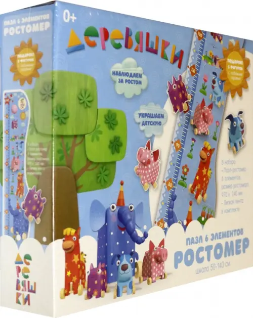 Пазл-ростомер - это отличное украшение для любой детской. Соберите пазл с любимыми героями мультфильма Деревяшки и закрепите ростомер на стене, используя ленту, идущую в комплекте. Не забудьте, что на пазле можно делать пометки о росте, а милыми фигурками, идущими в подарок, можно украсить комнату по своему усмотрению!