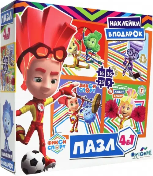 Пазл 4 в 1 + наклейки. Фиксики любят спорт. Спортивные игры