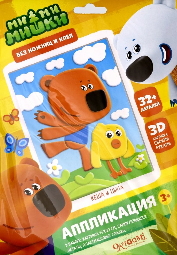 В наборе: картинка, мягкие самоклеящиеся детали аппликации, пластмассовые глазки, стразики.