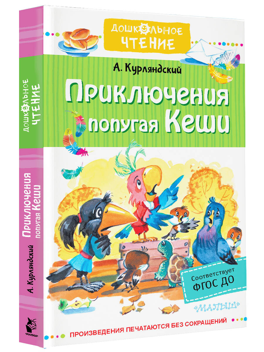 В книгу Александра Курляндского "Приключения попугая Кеши" вошли две истории: "Вы не были на Таити?" и "А нас и здесь неплохо кормят!". Вовка постоянно болеет. Спасти от бацилл его сможет только настоящий друг. Так у мальчишки появляется озорной и непоседливый попугай Кеша. Однажды Кеша обижается на Вовку и улетает. Так начинаются приключения попугая. Вторая история про очень толстого кота Василия. Он живёт на всём готовеньком и в ус не дует. Внезапно коту приходит письмо от его мамы - Муры Алексеевны. Василий первый раз в жизни отправляется в далёкое путешествие. Сказочные повести А. Курляндского не только развеселят мальчишек и девчонок, но и расскажут им о дружбе, взаимопомощи и смелости. Попугая Кешу, Ворону, толстого кота Василия и других сказочных героев можно увидеть и в мультфильме "Возвращение блудного попугая". Для дошкольного возраста.| Издательство | ИЗДАТЕЛЬСТВО "АСТ" |
