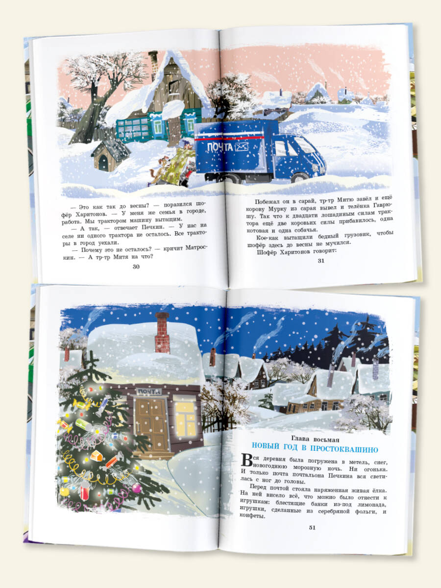 В одной знаменитой деревне Простоквашино, куда мечтает попасть каждый, живут дядя Фёдор, пёс Шарик и кот Матроскин. Они живут весело, дружно и интересно. Особенно зимой! Особенно в Новый год! Дел в деревне много, каждый день что-то происходит. Дядя Фёдор ждёт всех-всех в гости на новогодние праздники, чтобы лично пожелать всем счастливого Нового года!| Издательство | ИЗДАТЕЛЬСТВО "АСТ" |