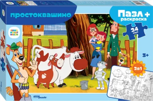 Puzzle maxi 24 + раскраска Простоквашино