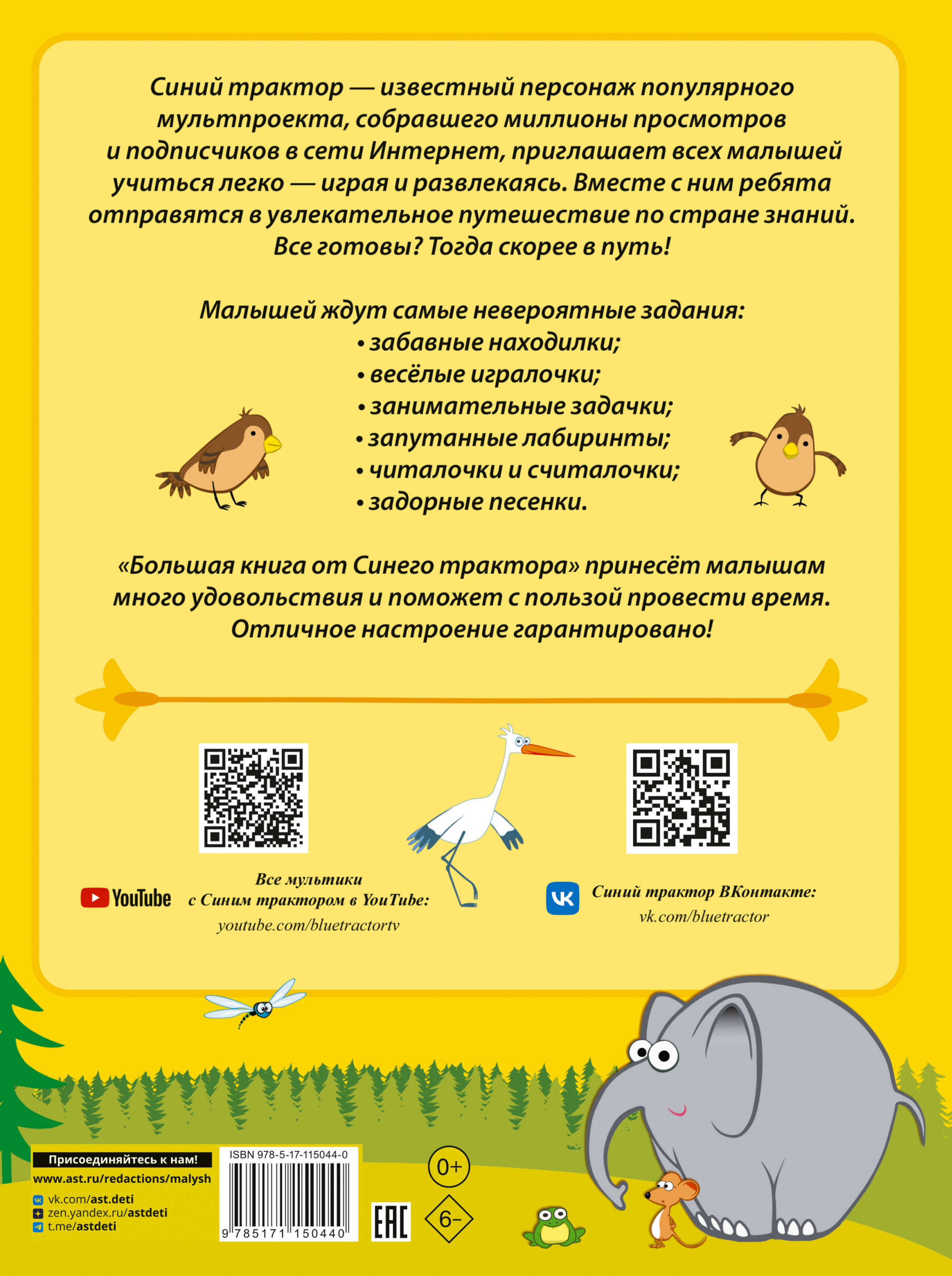 Синий трактор представляет! Все готовы играть, веселиться и развиваться? Тогда держитесь крепче! Тр-р-р-р! Поехали! Вас ждет 1000 самых интересных заданий: Самые нарядные буквы Самые забавные цифры Самые чистые цвета Самые верные направления Самые веселые звери Самые красивые птицы В компании с Синим трактором 1000 развивающих заданий, предложенных в игровой форме, будет выполнена с удовольствием, а отличное настроение, несомненно, станет постоянным спутником занятий.| Издательство | ИЗДАТЕЛЬСТВО "АСТ" |