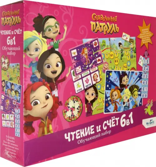 Обучающий набор 6 в 1 создан для занятий с ребенком. Внутри красивой подарочной коробки, выполненной в дизайне Сказочный патруль, вы найдете всё для развития навыка чтения и счета.