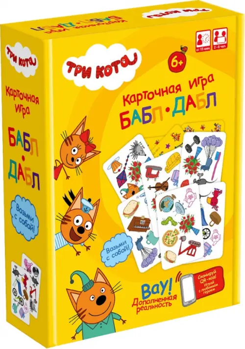 Три кота - Коржик, Карамелька и Компот - устроили веселый переполох и разбросали кучу предметов! Это быстрая и веселая игра, развивающая зрительное восприятие, внимательность и реакцию. Ищите одинаковые изображения на карточках - первый, кто верно заметит совпадение, забирает карточки со стола себе. Соберите больше всех карт и станьте победителем! Берите игру с собой и создавайте веселую атмосферу в любой компании! В наборе: 55 карт, правила. Время игры: от 15 минут. Количество участников: 2-8 человек. Материал: картон, бумага. Внимание! Не предназначено для детей до 3-х лет. Для детей от 6-ти лет.
