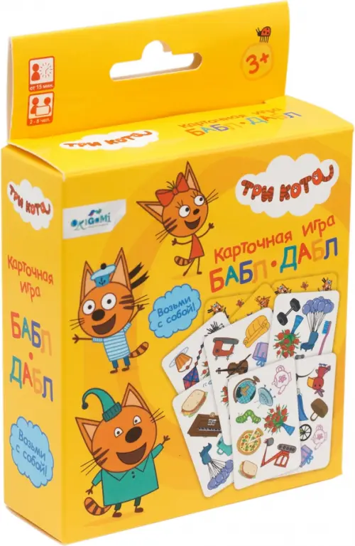 Три кота - Коржик, Карамелька и Компот - устроили веселый переполох и разбросали кучу предметов! Это быстрая и веселая игра, развивающая зрительное восприятие, внимательность и реакцию. Ищите одинаковые изображения на карточках - первый, кто верно заметит совпадение, забирает карточки со стола себе. Соберите больше всех карт и станьте победителем! Берите игру с собой и создавайте веселую атмосферу в любой компании!