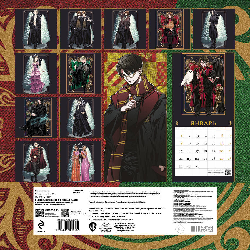 О серии: Наши настенные календари отличаются высоким качеством исполнения! Тщательно подобранные иллюстрации, напечатанные на глянцевой бумаге высочайшего качества, станут настоящим украшением дома, а в календарной сетке найдется место для ваших планов: большие клетки позволят делать записи и организовать свой год! В календаре также отмечены все государственные праздники. В серии настенных календарей издательства «ЭКСМО» каждый найдет тему по вкусу: великие художники, великолепные подборки с самыми знаменитыми произведениями искусства, легендарные кинематографические саги и игры, главные книжные авторы и бестселлеры, фотографии и иллюстрации любимых животных и многое-многое другое! О календаре: СУПЕРЛИЦЕНЗИЯ! Официальная продукция по «ГАРРИ ПОТТЕРУ». Великолепный лицензионный настенный календарь на 2024 год с милыми иллюстрациями в популярном стиле АНИМЕ! Удобные настенные календари станут отличным приобретением себе и суперподарком близким! Эксклюзивные иллюстрации, отличное полиграфическое исполнение, удобный формат (300х300 мм) - все это будет дарить вам такие незабываемые эмоции каждый день, что вы не заметите, как пролетит целый год! Технические параметры: - Тип календаря - настенный перекидной. - Год - 2024. - Календарная сетка - с разбивкой по месяцам. - Вид скрепления - скрепка. - Ширина - 30 см. - Высота - 30 см. - Внутренний блок - мелованная бумага 150 г/м2. - Подложка - плотный гофрокартон для поддержания формы. - Индивидуальная упаковка в плотный целлофановый пакет.| Издательство | ООО "Издательство "Эксмо" |