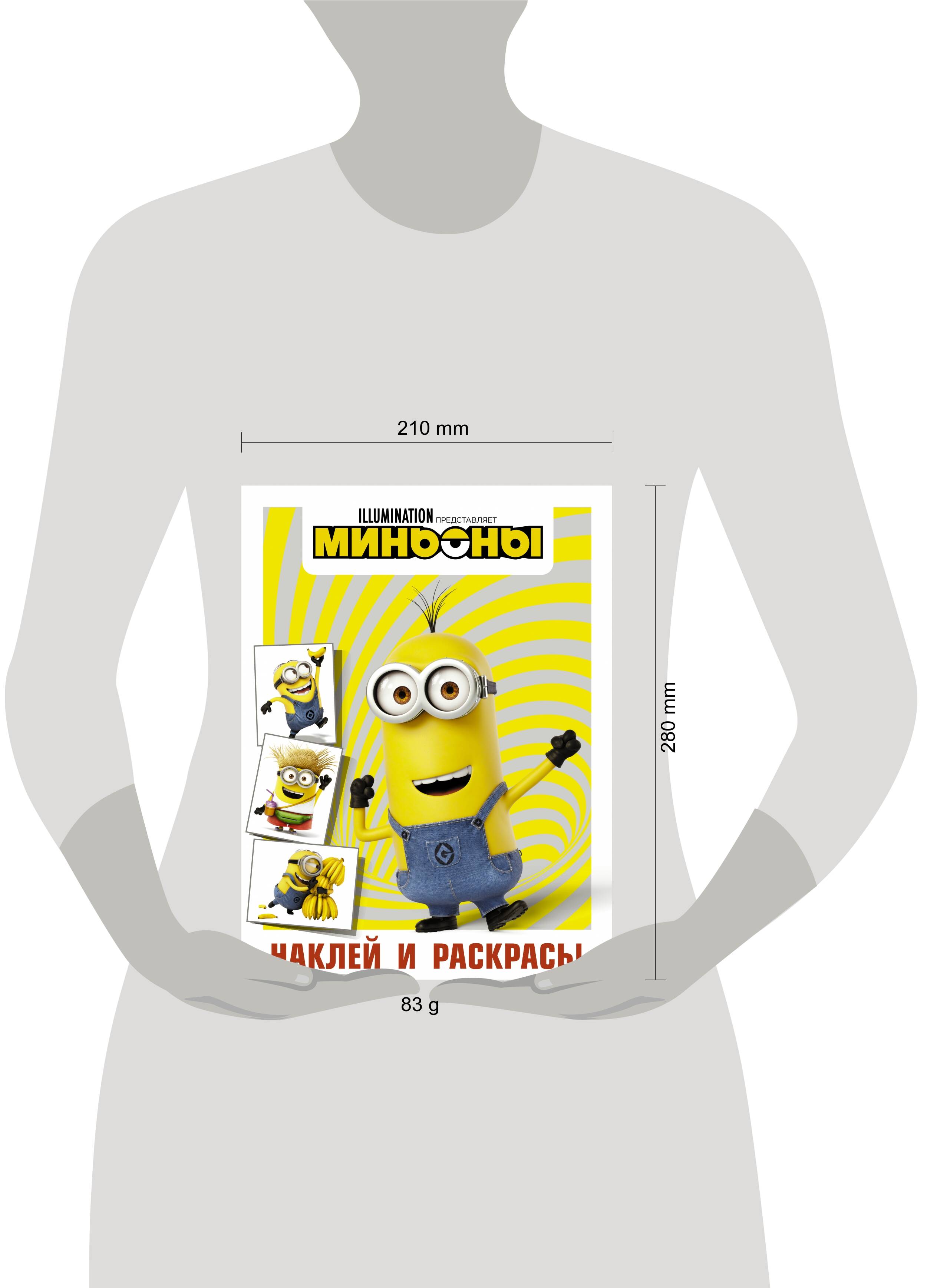 Жёлтые непоседы снова в деле! А ты поскорее доставай карандаши, фломастеры или краски и добавь цвета их приключениям! За образец можешь взять наклейки - на каждой странице есть место, куда можно приклеить яркие изображения забавных малышей.