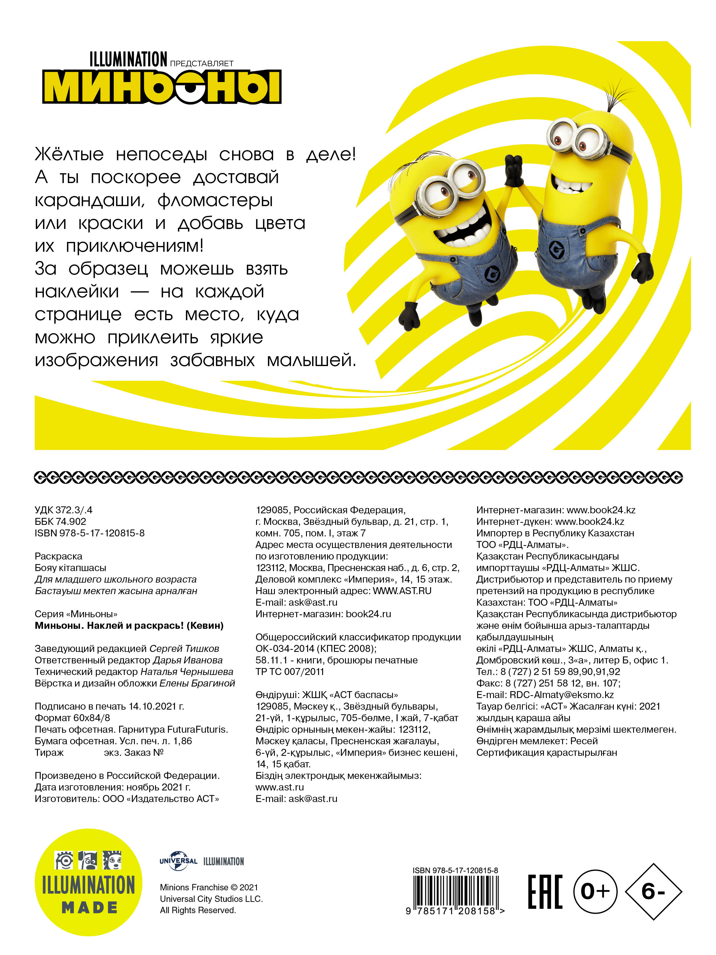 Аннотация: Миньоны. Наклей и раскрась (Кевин)