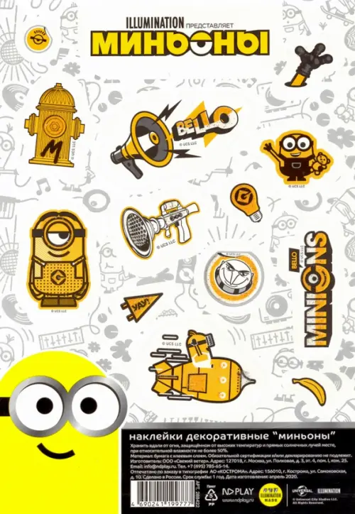 Наклейки декоративные бумажные А5 "Миньоны", набор №4