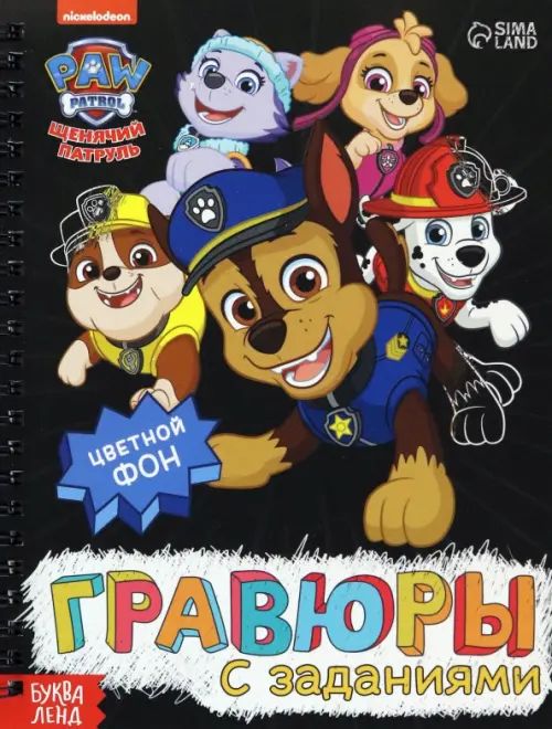 Альбом Гравюры с заданиями. Щенячий Патруль, 5 гравюр, цветной фон