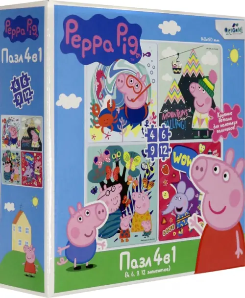 Набор пазлов "Путешествия ждут" - это комплект пазлов с разной элементностью, включающий в себя головоломки для самых маленьких от 4 до 12 элементов, объединенных общей тематикой. Это необычная коллекция картинок с изображением героев мультфильма Свинка Пеппа, которая понравится любому ребенку. Постепенно усложняя сборку пазла от 4 элементов до 12 элементов, ребенок научится внимательности, концентрации, а также сможет развить мелкую моторику.