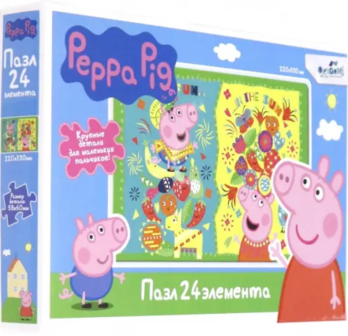 Пазл из серии Peppa Pig понравится любому ребенку, а сборка яркой картинки принесет радость не только малышам, но и их родителям. Крупные детали пазла удобно ложатся даже в самую маленькую ручку и их удобно собирать на полу.