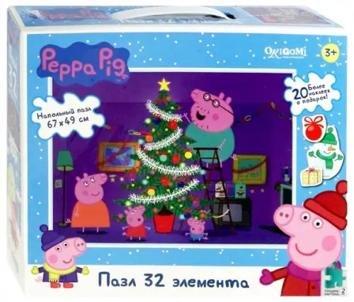 Свинка Пеппа и её братик Джордж просто обожают зиму! Ведь это отличная возможность отлично провести время с родными и друзьями! Можно погулять по заснеженным полям или построить ледяную крепость, покататься на замёрзшем озере на коньках или поиграть в снежки! Что же ждёт сегодня наших любимых героев? Узнайте это, собрав напольный зимний пазл, состоящий из 32 элементов. А красивые наклейки, которые вы получите в подарок, помогут продлить прекрасное зимнее настроение и надолго запомнить весёлые приключения с Пеппой!