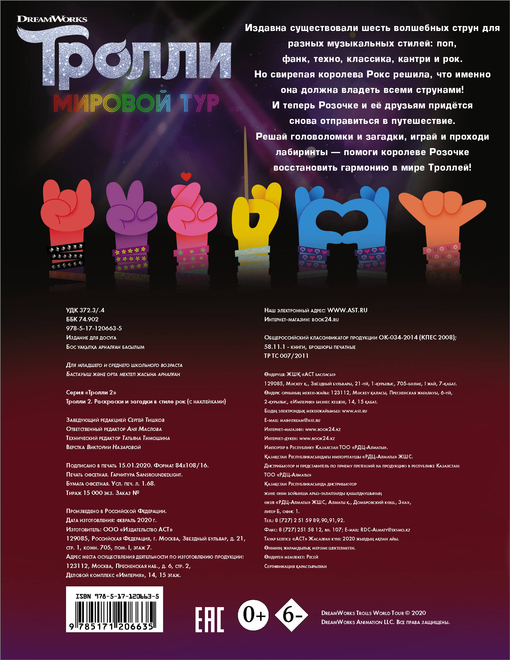 Аннотация: Тролли 2. Раскраски и загадки в стиле рок (с наклейками)