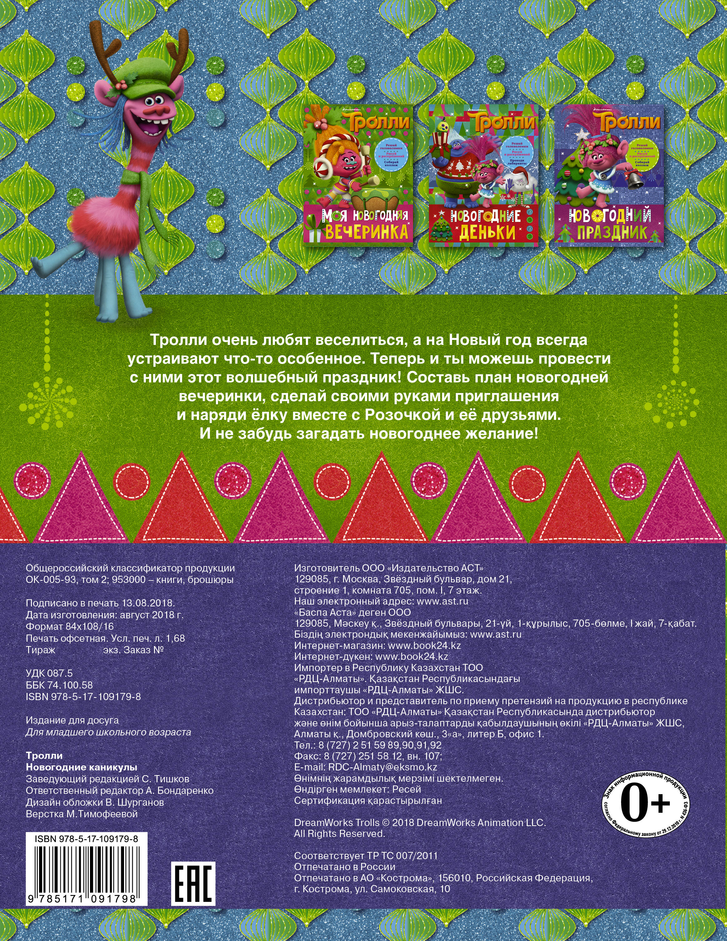 Тролли очень любят веселиться, а на Новый год всегда устраивают что-то особенное. Теперь и ты можешь провести с ними этот весёлый праздник! Составь план новогодней вечеринки, сделай своими руками приглашения и наряди ёлку вместе с Розочкой и её друзьями. И не забудь загадать новогоднее желание!| Издательство | Издательство "АСТ" |