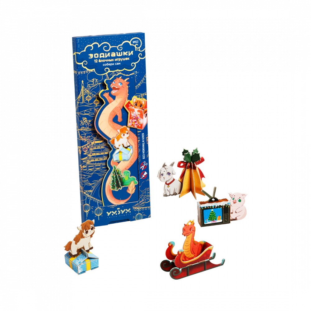 Набор сборных игрушек ЗОДИАШКИ 12 ёлочных игрушек К Новому году