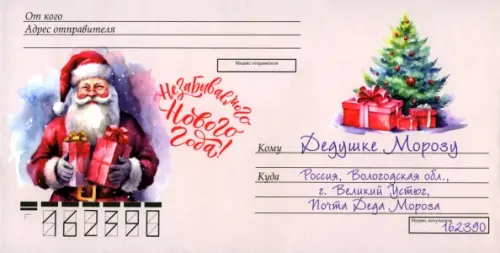 Великолепный почтовый конверт Дедушке Морозу с повышенной плотностью 120 г/м2
