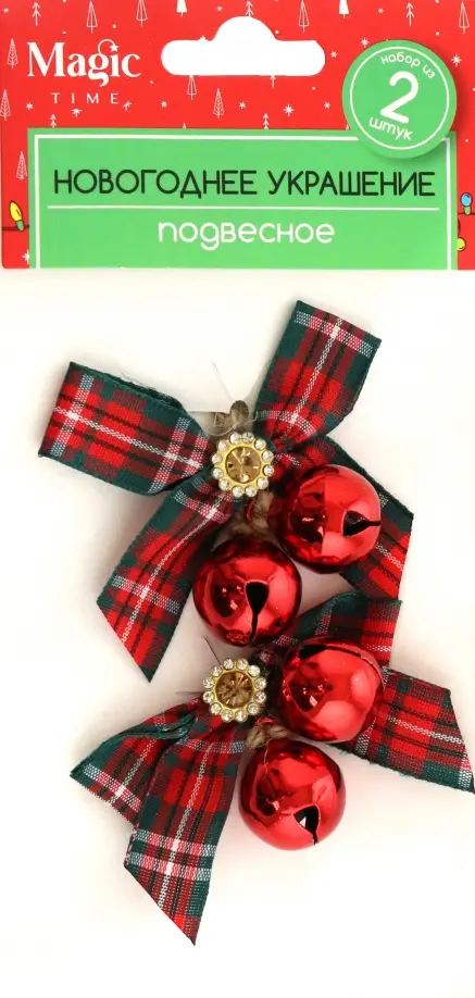 Новогодние красные бубенчики в виде подвесного украшения прекрасно дополнят собой праздничный интерьер или новогоднюю елку и просто будет радовать окружающих. Своим универсальным дизайном украшение локанично подчеркнет убранство дома, подарит ощущение сказки и волшебства. Изделие выполнено из металла, отделано лентой из полиэстра. В наборе 2 шт.