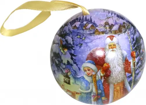 Новогоднее подвесное елочное украшение с новогодним пожеланием внутри прекрасно подойдет для праздничного декора. Изделие, выполненное из металла, украшено ярким рисунком и оснащено специальной петелькой для подвешивания.
