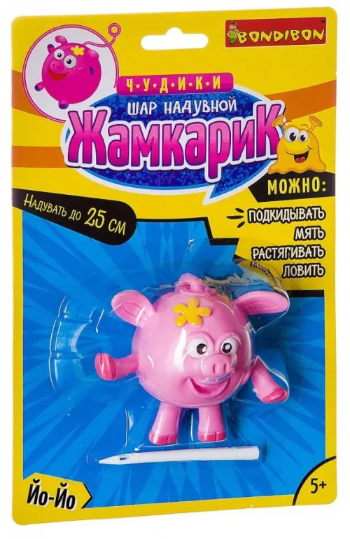 Этот надувной шар в ярком и забавном дизайне прекрасное развлечение для детей. Его можно подкидывать, ловить, мять, растягивать, играть в вышибалы и не бояться получить ушибы и травмы. Легко накачать при помощи специального приспособления, входящего в комплект. Надувается до 25 см. Имеет принцип игрушки йо-йо. Пригоден для повторного использования. Чтобы сдуть шар вставьте приспособление для надувания в специальное отверстие на теле шара и выпустите воздух.