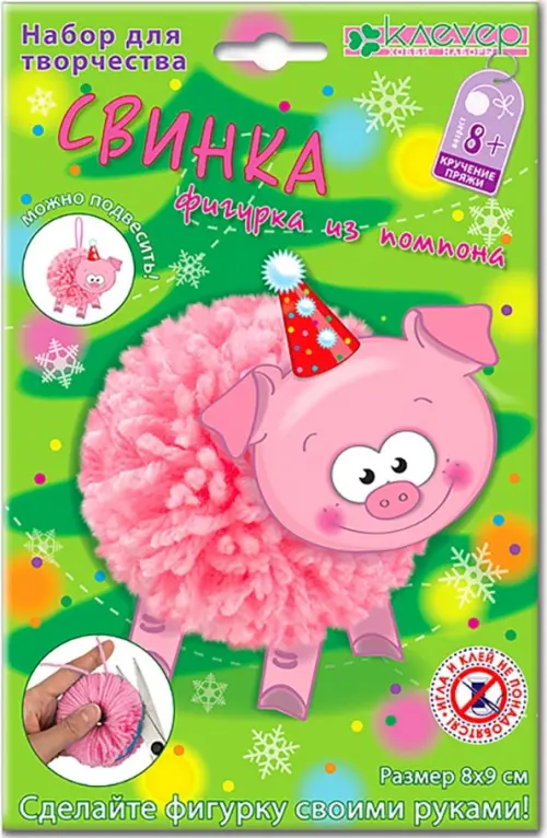 Набор для изготовления фигурки Клевер «Свинка из помпона», арт. АШ 01-213, 8х9 см