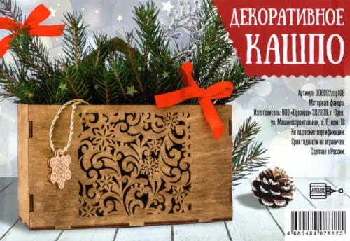Кашпо деревянное "Новогодний конверт", с ручками, орех