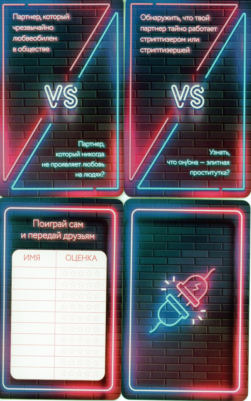 78 карт с вопросами для провокационных разговоров в большой и веселой компании. Предложите эту игру на вечеринке и узнайте все секреты ваших друзей. Во время игры вы начнете смеяться и наслаждаться "пикантностью" этого разговора. Просто веселитесь! В этой игре нет проигравших!| Издательство | Эксмо |