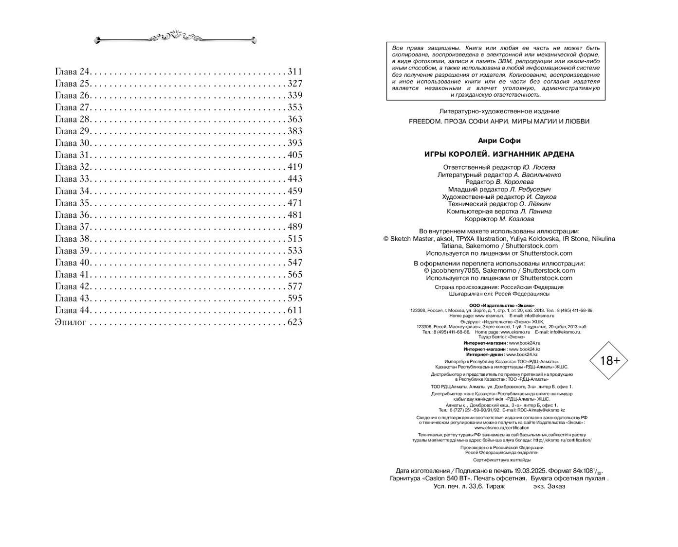 Долгожданный спин-офф трилогии от российской писательницы Софи Анри - история дерзкого Тристана Вейланда, брата Рэндалла. Узнайте больше о четвертом сыне короля Алана, порочном принце с демонической красотой и харизмой. В этом томе он снимет маску распутного повесы, а читателям откроется его глубокая душа и богатый внутренний мир. Вас ждут: - Таинственные путешествия. Тристан помогает бежать Адалине, фаворитке короля Запада. Герои странствуют по Западу, Югу, Ардену и даже отправляются на корабле на Малый материк. - Новые яркие персонажи (Изекиль - помощник Тристана). - Возвращение уже полюбившихся героев трилогии (Авроры, Рэндалла, Закарии). - Страстная любовь и преданность, детективная линия, разоблачения злодеев. «Принц Тристан был похож на демона-искусителя. На дне его больших глаз плескалась черной жидкостью сама порочность. А его улыбка источала сладкий яд». Таким Тристан предстает перед нами в трилогии «Игры королей». Но мало кто подозревает о том, какие истинные чувства бушуют в его сердце. Что он на самом деле может быть нежным, а благородства ему не занимать. Суммарный тираж трилогии составляет 90 тыс. экземпляров на конец 2024 года. И это далеко не предел! История о вселенной Ардена продолжается. В игру вступает самый яркий и неоднозначный принц.| Издательство | ООО "Издательство "Эксмо" |