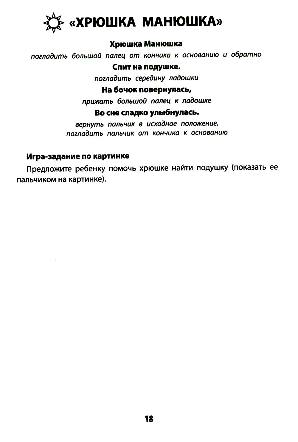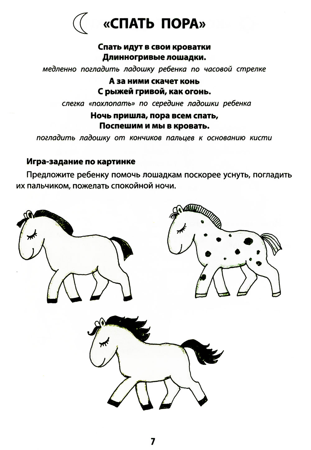 В книге собран практический материал, который поможет взрослому сформировать у малыша 2-4 лет предпосылки «сонного торможения». Предлагаемые игры сочетают в себе расслабляющий массаж, элементы пальчиковой гимнастики в сопровождении коротких стихотворений. Данный игровой материал рекомендуется использовать как мини-ритуалы перед дневным или ночным сном ребенка, чтобы сформировать у него позитивное отношение к этому режимному моменту. Книга рекомендована родителям, бабушкам, дедушкам, няням, педагогам дошкольных учреждений.