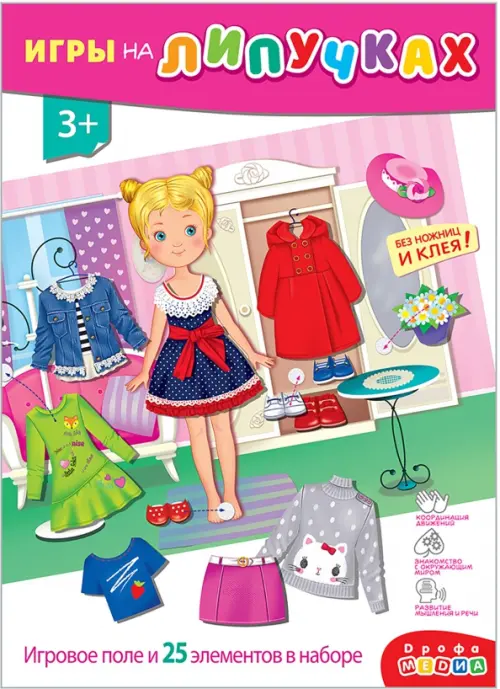 Игра знакомит с разными предметами одежды и обуви, учит убирать вещи на место, пользоваться липучками, развивает речь, воображение, мелкую моторику.