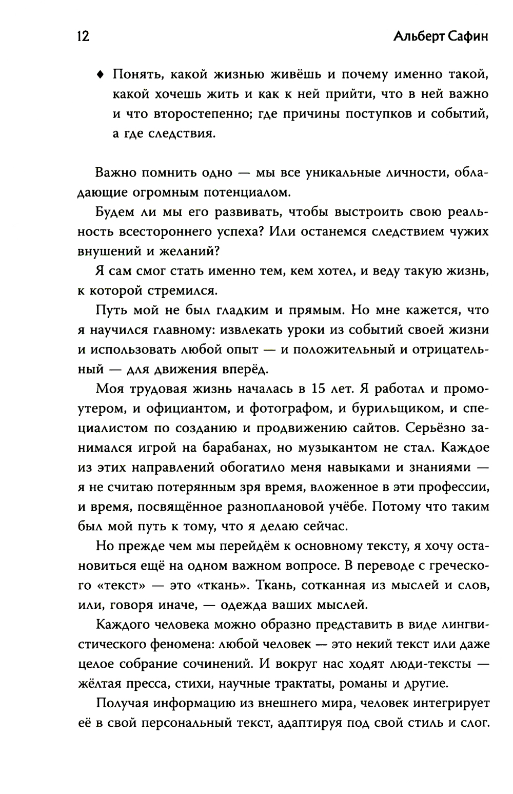 Комплект из двук книг Альберта Сафина: «Игры с разумом» КАК определить свои действительные (а не внушенные извне) желания и цели? КАК долгосрочно планировать и всегда выполнять задуманное? КАК держать дела под контролем, не проверяя актуальные статусы выполнения задач каждую минуту? КАК стать продуктивнее и повысить уровень своего дохода? На эти и многие другие вопросы о личной эффективности Альберт Сафин отвечает в своей книге. С ее помощью вы научитесь принимать только верные решения, которые принесут вам экстравысокие результаты. В своей второй книге «Воспитание разума» автор учит читателя менять внутренние установки, избавляться от психологических барьеров и жить в гармонии с собой. Эта книга для тех, кто стремится превратить свою «фантазию» о счастливой жизни в реальность. Научиться спокойно и взвешенно принимать решения в любых ситуациях. Уменьшить уровень стресса. Победить синдром самозванца. Автор также подскажет, как: • трудиться на работе плодотворно и эффективно, сохраняя силы и получая радость от результатов; • жить в достатке, создавая денежный запас и удовлетворяя свои потребности; • научиться справляться со словесными манипуляциями. Главное - помнить: только вам под силу сделать свою жизнь насыщенной позитивными событиями и вдохновляющими результатами.| Издательство | Эксмо |