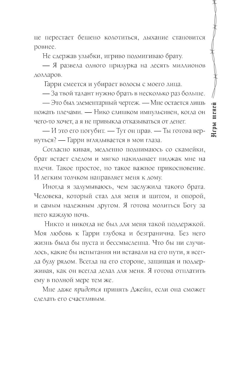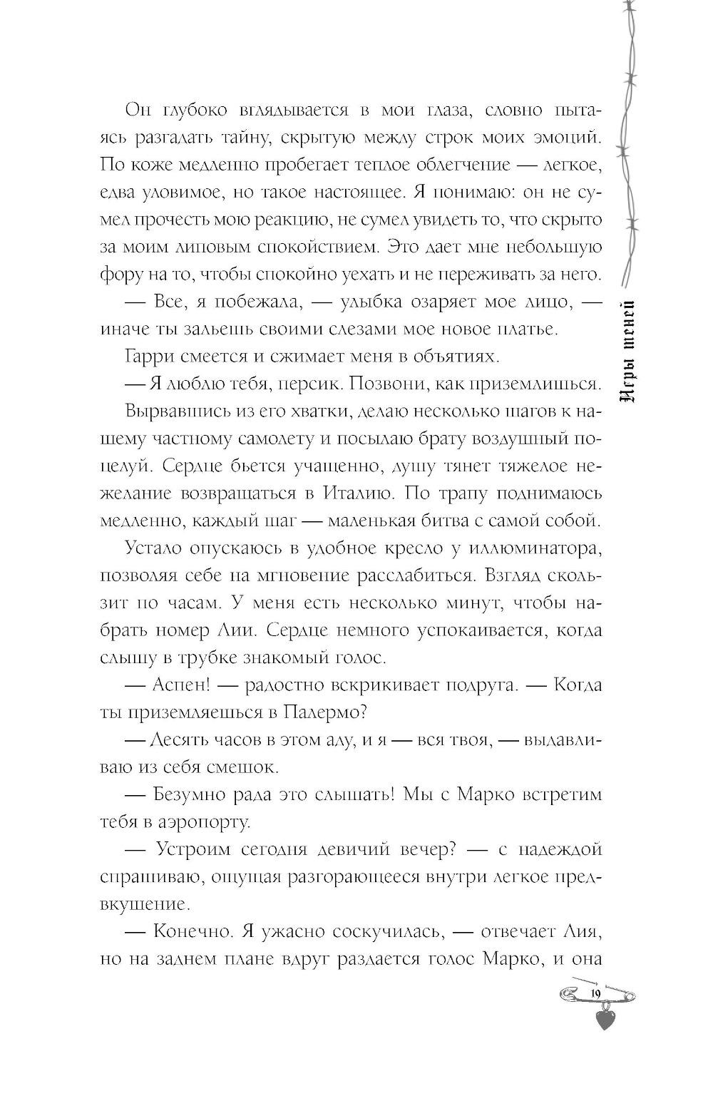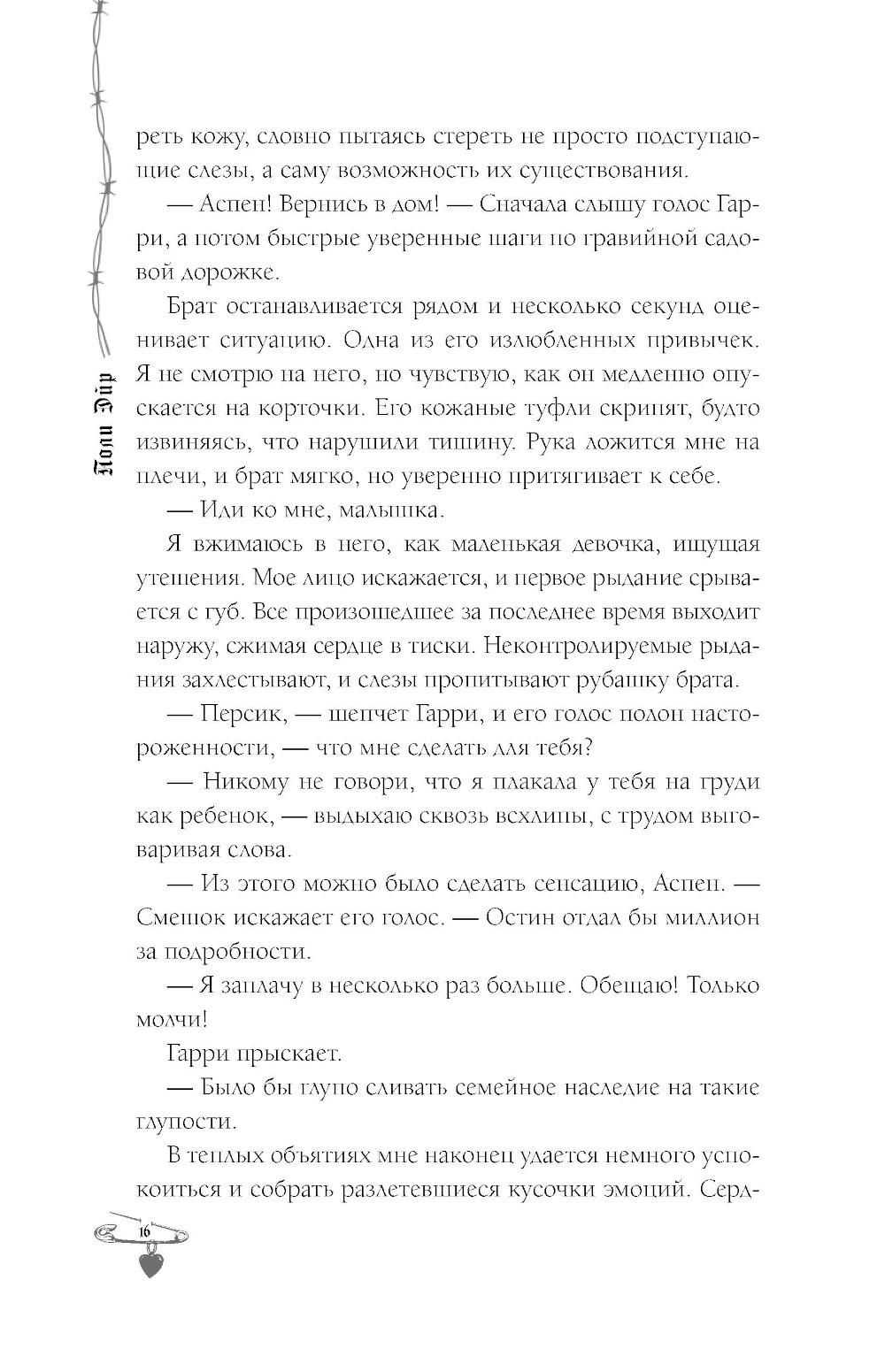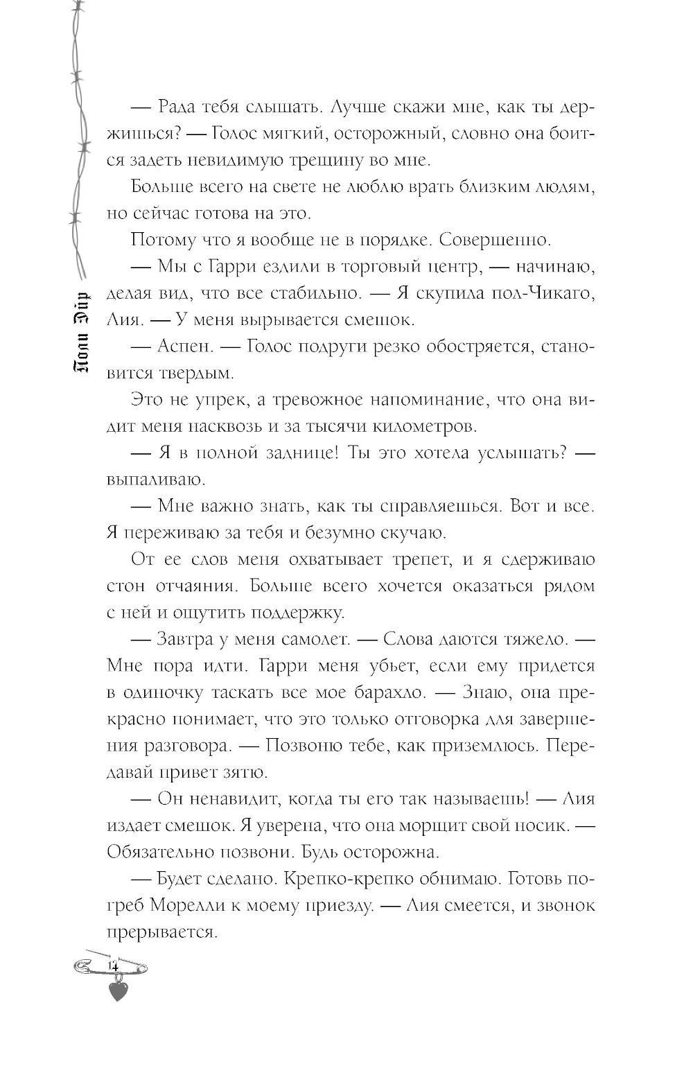 Аспен: Наш брак изначально был не по любви, а по расчёту. Это деловая сделка - холодный рассудок против горячих чувств. Николас Холланд - чертовски сексуальный, обаятельный и профессиональный убийца. Он так раздражает меня, что каждый раз я сдерживаю себя, чтобы не вонзить шпильку в его глаз. Нико: Когда я впервые увидел её - это было похоже на пришествие дьявола по мою душу. Со временем пришло осознание, что это карма за все мои смертные грехи. Она слишком взбалмошна и вносит полнейший беспорядок в мою жизнь. Я очень надеюсь, что не сломаю ей позвоночник раньше, чем она отдаст мне своё сердце.| Издательство | АСТ |