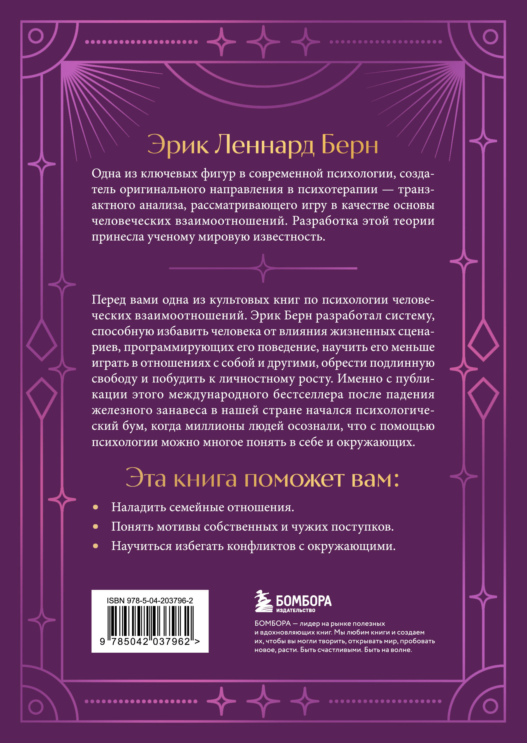 Перед вами одна из культовых книг по психологии человеческих взаимоотношений. Эрик Берн разработал систему, способную избавить человека от влияния жизненных сценариев, программирующих его поведение, научить его меньше играть в отношениях с собой и другими, обрести подлинную свободу и побудить к личностному росту. В этой книге вы найдете много полезных советов, которые помогут понять природу человеческого общения, мотивы собственных и чужих поступков и причины возникновения конфликтов. По мнению автора, судьба каждого из нас во многом определяется еще в раннем детстве, однако в зрелом возрасте можно научиться управлять ею, если этого захотеть. Именно с публикации этого международного бестселлера после падения железного занавеса в нашей стране начался психологический бум, когда миллионы людей осознали, что с помощью психологии можно многое понять в себе и окружающих. Эрик Леннард Берн (1910-1970) - одна из ключевых фигур в современной психологии, создатель оригинального направления в психотерапии - «транзакционного анализа», рассматривающего игру в качестве основы человеческих взаимоотношений. Разработка этой теории принесла ученому мировую известность. 48 лет является абсолютным бестселлером по человеческим взаимоотношениям. Входит в мировой ТОП-5 самых популярных книг по психологии. Эта книга поможет вам: - Наладить семейные отношения. - Понять мотивы собственных и чужих поступков. - Научиться избегать конфликтов с окружающими. В книге вы найдете: - Сценарии игр, в которые люди бессознательно играют каждый день. - Соответствие игр жизненным ситуациям, в которых они разыгрываются. - Стратегии антиигр, с помощью которых можно освободиться от привычного поведения. «Любой человек имеет черты маленького ребенка». - Эрик Берн| Издательство | ООО "Издательство "Эксмо" |