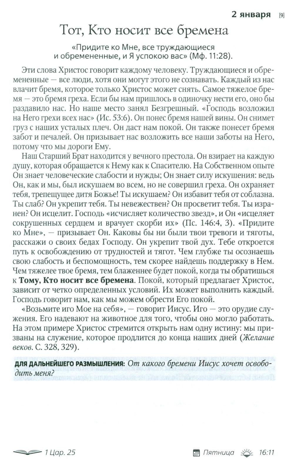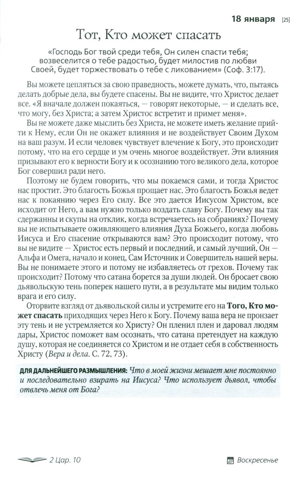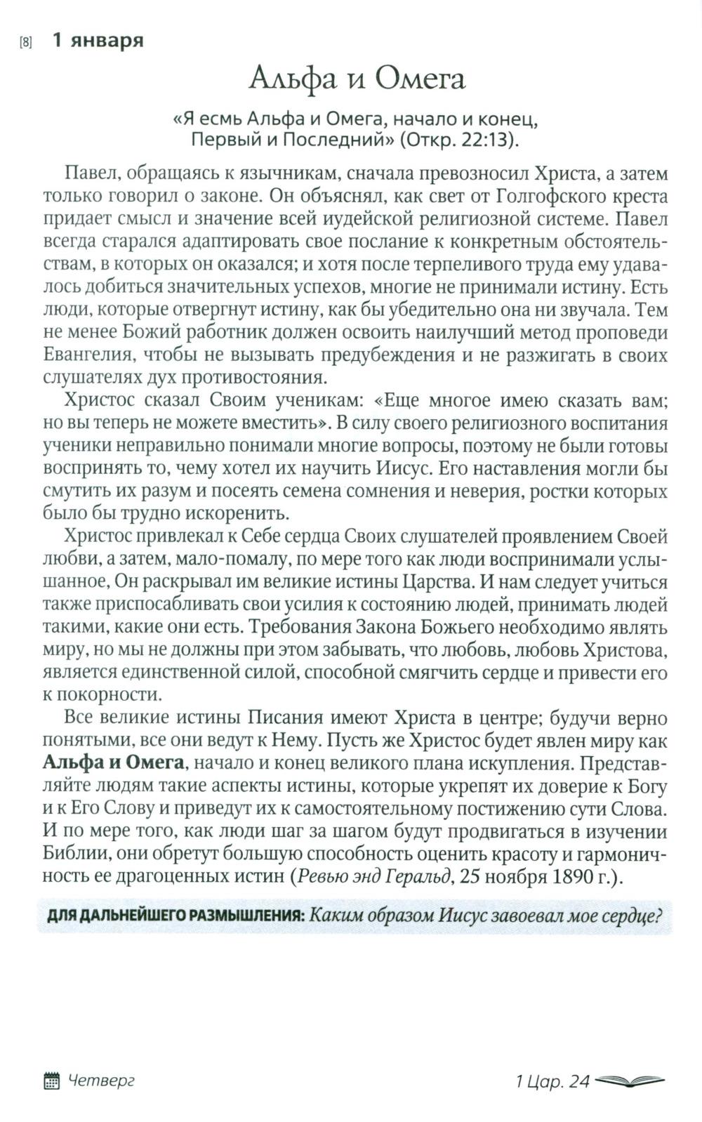 «Иисус - величайшее имя» - не просто очередная книга об Иисусе. Это живой и многогранный портрет Христа, созданный одной из самых влиятельных христианских писательниц Эллен Уайт. В своих трудах она обращалась к Спасителю, используя более 840 имен. В это издание вошли 365 наиболее ярких и значимых из них. Книга построена как сборник ежедневных чтений на год. Каждое размышление дополнено вопросом для самоанализа, что делает издание незаменимым спутником утренних молитв, укрепления веры и углубления личных отношений с Богом. Независимо от того, начинаете ли вы свой духовный путь или уже многие годы идете за Христом, эта книга откроет вам новые грани Его личности и поможет глубже постичь Его безграничную любовь. Каждая страница напоминает: для любой человеческой нужды есть ответ в Иисусе - Том, Чье имя превыше всякого имени.| Издательство | Источник жизни |