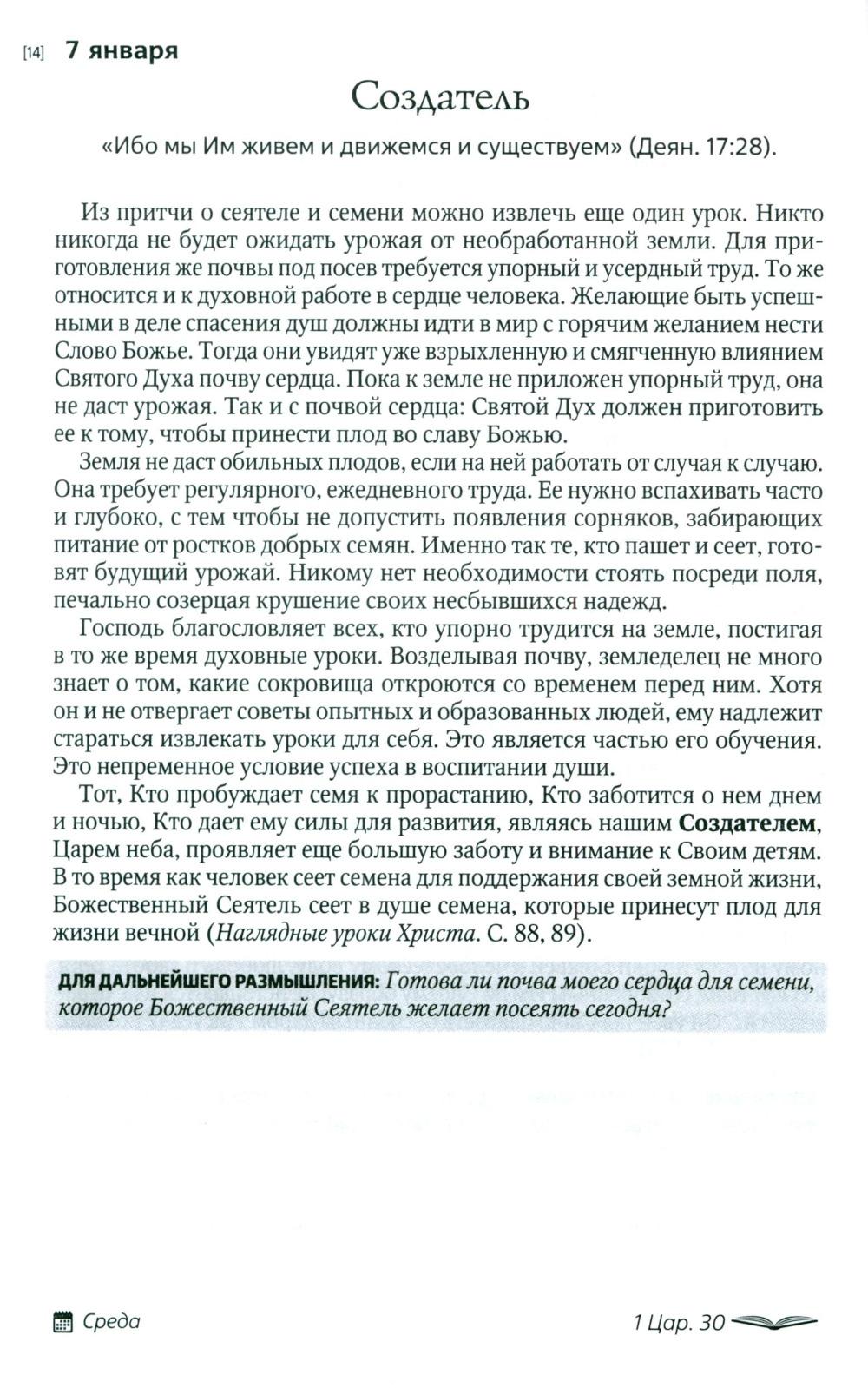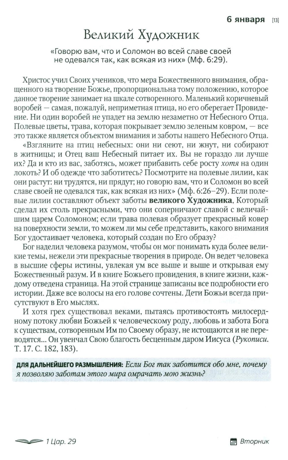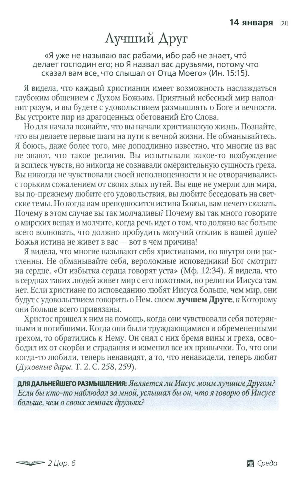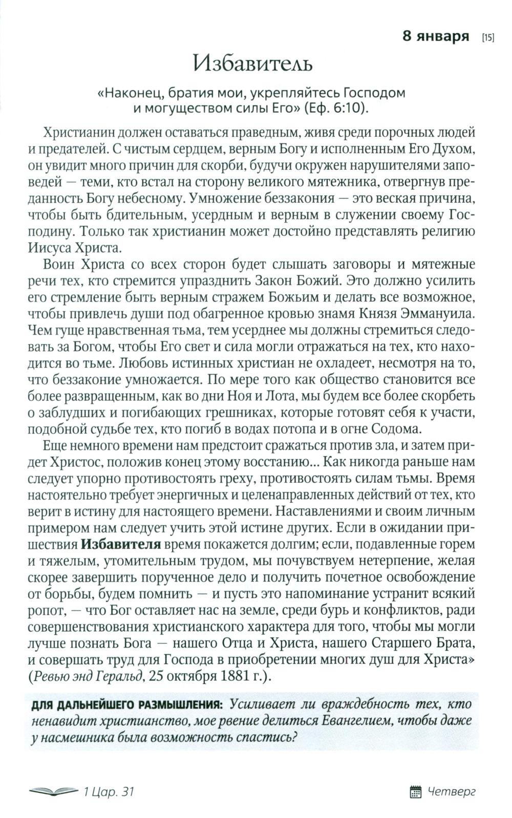 «Иисус - величайшее имя» - не просто очередная книга об Иисусе. Это живой и многогранный портрет Христа, созданный одной из самых влиятельных христианских писательниц Эллен Уайт. В своих трудах она обращалась к Спасителю, используя более 840 имен. В это издание вошли 365 наиболее ярких и значимых из них. Книга построена как сборник ежедневных чтений на год. Каждое размышление дополнено вопросом для самоанализа, что делает издание незаменимым спутником утренних молитв, укрепления веры и углубления личных отношений с Богом. Независимо от того, начинаете ли вы свой духовный путь или уже многие годы идете за Христом, эта книга откроет вам новые грани Его личности и поможет глубже постичь Его безграничную любовь. Каждая страница напоминает: для любой человеческой нужды есть ответ в Иисусе - Том, Чье имя превыше всякого имени.| Издательство | Источник жизни |