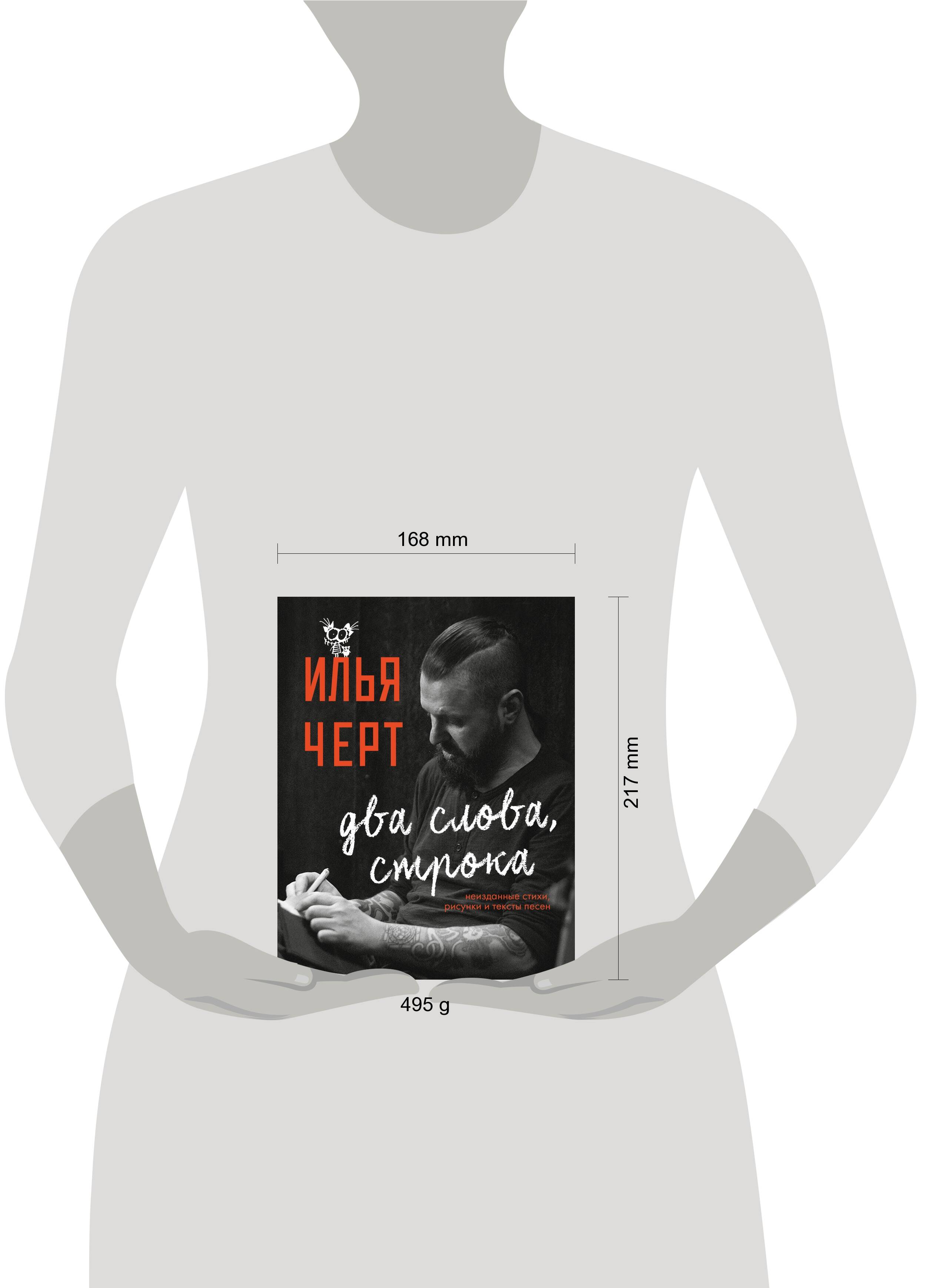 Илья Черт - харизматичный лидер группы Пилот, которая уже больше 20-ти лет держит нашу рок-сцену. Рок северной столицы славится тем, что его лирика не оставляет никого равнодушным. Этим отличается и Черт - его аудитория это не совсем фанаты, это добрые друзья, которые разделяют все события, которые происходят у Ильи. В одном только сообществе Вконтакте их больше 75 000 человек, а концертные залы всегда забиты под завязку - ведь как можно не прийти в гости к другу. "Пилот" не совсем характерные рокеры: они выросли как и многие на протесте, сейчас же их лирика скорее созидательная и учит оставаться человеком во всех жизненных ситуациях. В книгу "Два слова, строка" вошел эксклюзивный материал, которым Илья делится впервые за 20 лет: это его рисунки и сканы рабочих тетрадей, где он писал песни, которые сейчас поют тысячи людей, а также неизданные ранее тексты, которые Черт писал в стол и решил опубликовать.| Издательство | ООО "Издательство "Эксмо" |