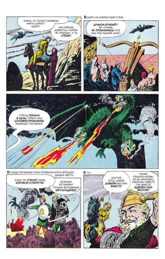 Думаете, что первым славянским фэнтези на западе был Ведьмак? Близко, но не в яблочко! В самый разгар холодной войны издательство DELL каким-то невероятным чудом издало комикс-адаптацию фильма Александра Птушко «Илья Муромец» 1956 года. Великому фильму - годная адаптация! Авторы бережно и профессионально перенесли киноленту на страницы комикса представили западу похождения могучего богатыря Илья Муромца. Правда, некоторые имена героев русских сказок были адаптированы своеобразно - например, Змей Горыныч превратился в Дракона Зуму, но это лишь добавляет особого шарма, этой невероятной жемчужины мира комиксов, которая доказывает прописную истину о том, что даже в самые тёмные времена искусство способно преодолевать любые границы!| Издательство | Alpaca |
