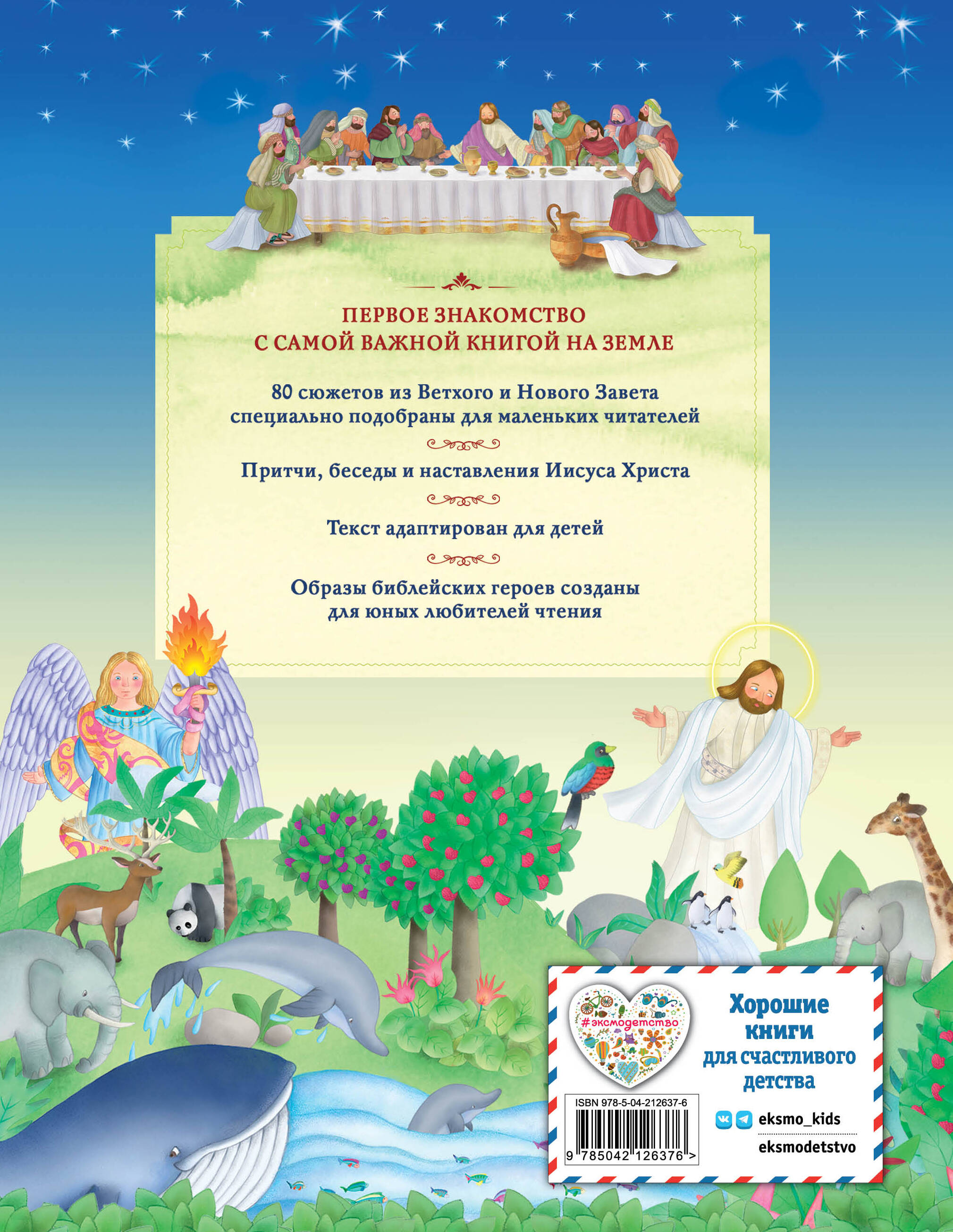 Подарочное иллюстрированное издание Библии для детей! Допущено к публикации Издательским советом Русской Православной Церкви. В увлекательном и лёгком пересказе для детей библейских историй, выполненном княгиней Марией Александровной Львовой, вы узнаете все главные сюжеты Ветхого и Нового Завета. Почему Авраам чуть не убил своего сына, а голодные львы не съели Даниила? Как удалось юному пастушку Давиду победить великана Голиафа? Почему Иону проглотила большая рыба, а Иисус Христос был казнен и воскрес? И многие другие! Большой формат, белая бумага, чёткий крупный шрифт. Иллюстрации талантливой испанской художницы Марифе Гонсалес превращают чтение в увлекательное путешествие и помогают детям с интересом открыть для себя первую и самую важную книгу - Библию. Книга рассчитана для детей 6-9 лет. Подойдёт для самостоятельного чтения или совместного чтения со взрослыми.| Издательство | ООО "Издательство "Эксмо" |