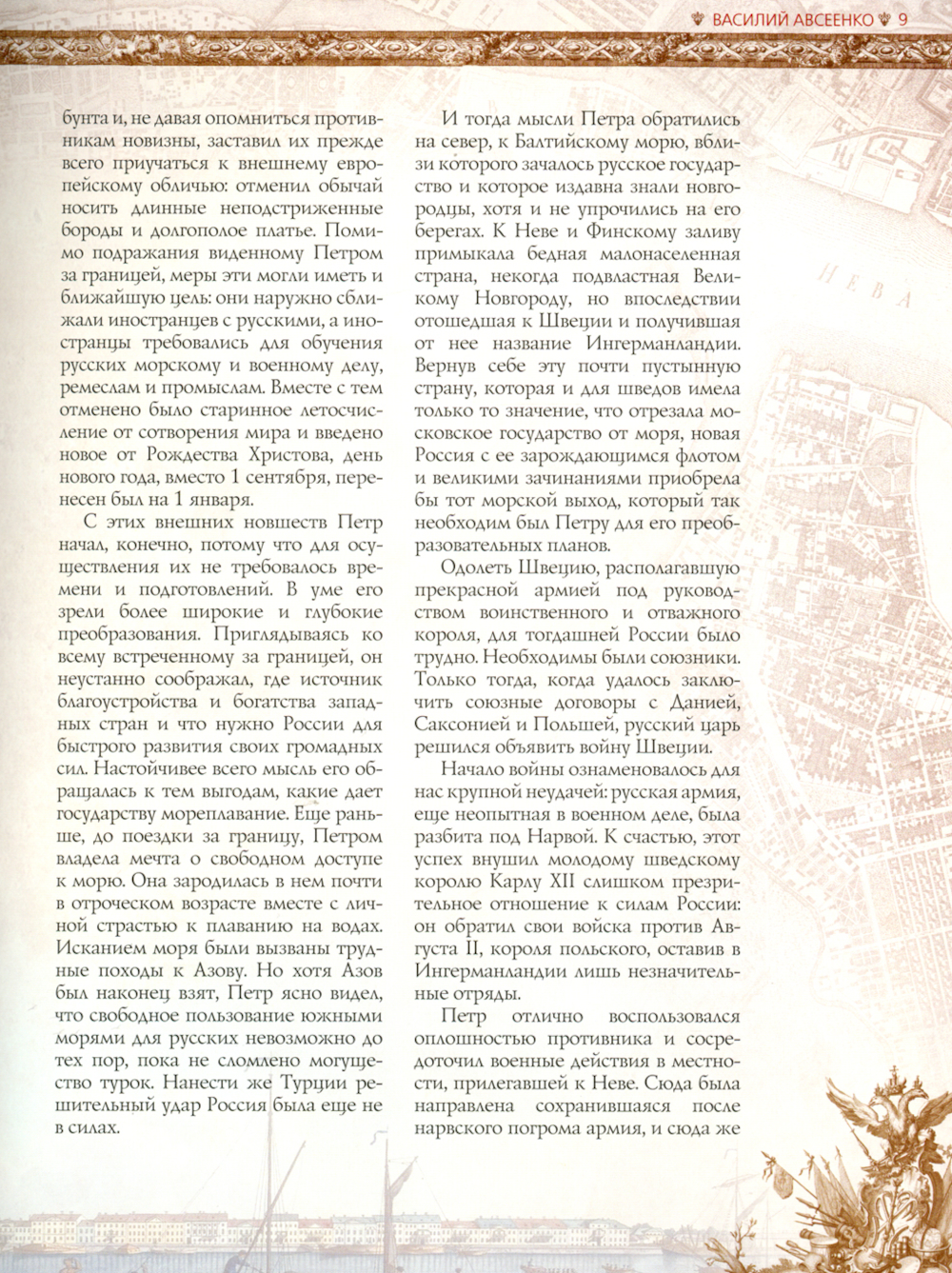 Книга русского писателя, журналиста, издателя газеты «Санкт-Петербургские ведомости» Василия Авсеенко (1842-1913) была выпущена в 1903 году к юбилею Санкт-Петербурга. «Иллюстрированная история Санкт-Петербурга» проведет нас по двум столетиям в жизни города на Неве, с закладки первого камня до начала XX века. Но труд Василия Авсеенко - не только исторический экскурс: здесь превосходно описаны быт и нравы горожан, праздники, архитектурные памятники и достопримечательности Северной Пальмиры. Кроме того, в нем нашлось место и для ярких мастерских портретов выдающихся людей, деятельность которых была связана с городом на Неве - от императоров и великих полководцев до художников, писателей и поэтов.