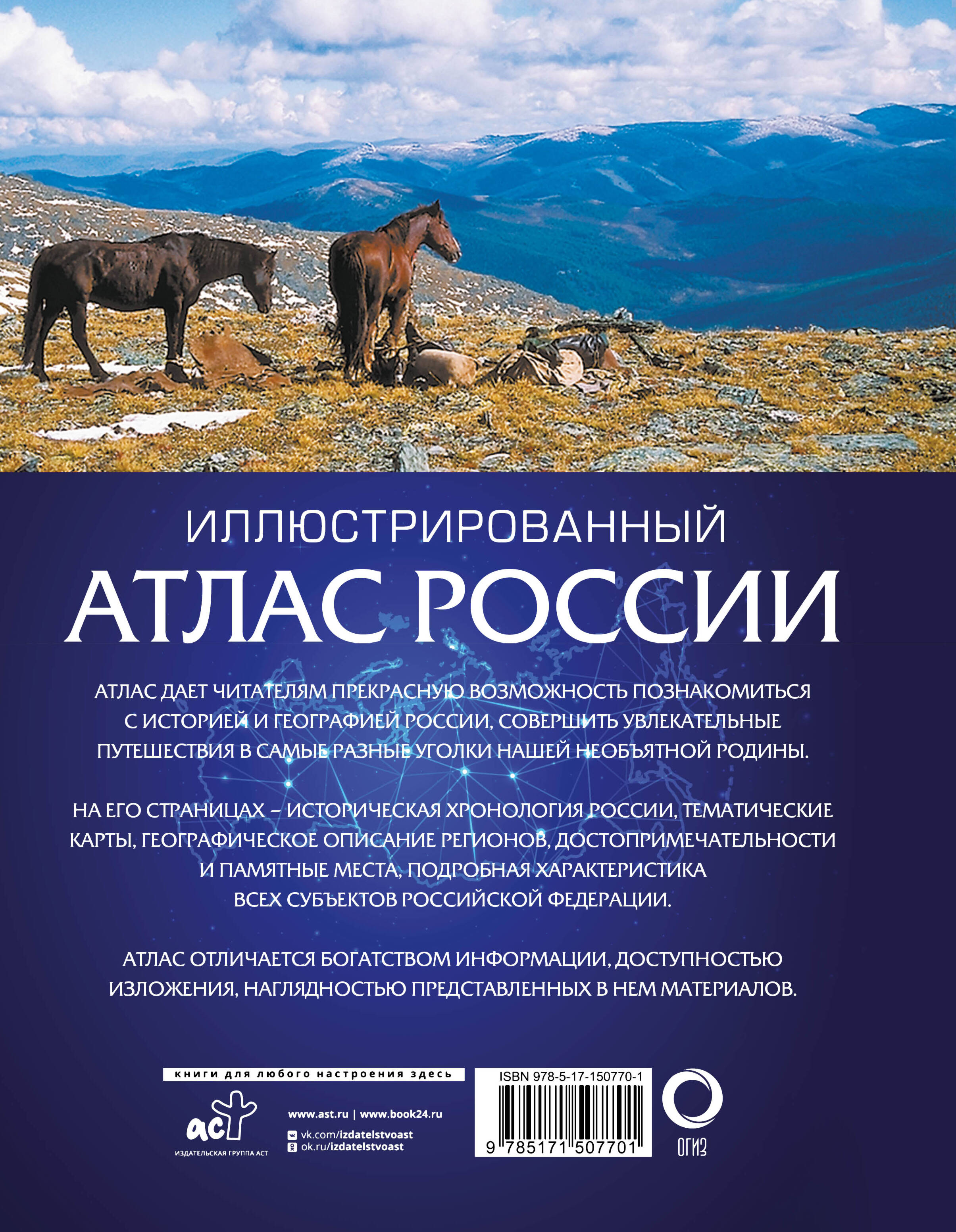 Иллюстрированный атлас России - это прекрасная возможность познакомиться с историей и географией нашей страны, совершить увлекательное путешествие в различные её регионы. На страницах атласа: • Историческая хронология • Тематические карты • Географическое описание регионов • Достопримечательности и памятные места • Подробная характеристика всех субъектов Федерации • Указатель географических объектов. Атлас адресован всем, кто хочет больше знать о нашей великой Родине.