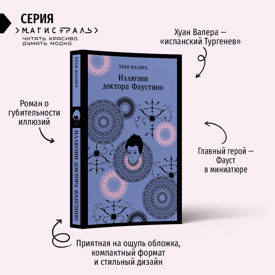 Хуан Валера - испанский писатель, дипломат и философ. По долгу службу полгода пробыл в Санкт-Петербурге. Так появились его «Письма из России». В них Хуан Валера запечатлел юмористические зарисовки петербургского быта, дипломатические новости, свои размышления о развитии русской литературы от летописей до Пушкина и Гоголя. Сближает Хуана Валеру с русской литературой еще и то, что западноевропейские критики называли его «испанским Тургеневым». Уже само заглавие романа - «Иллюзии доктора Фаустино» - отсылает к знаменитому «Фаусту» Гете и намекает на «утраченные иллюзии» в произведениях Бальзака и Флобера. Но доктор Фаустино - это, скорее, Фауст в миниатюре. Персонаж Хуана Валеры не наделен выдающимися способностями, его не посещает дьявол и не предлагает ему бессмертие. Дон Фаустино Лопес де Мендоса - обнищавший аристократ, которым овладевают губительные иллюзии. Он оканчивает университет, получает звание доктора и пытается найти себе применение в жизни. Ему кажется, что стоит только переехать в Мадрид, как он тут же станет выдающимся философом, поэтом или политиком. При этом доктор Фаустино стремится к идеальной любви, за которую он готов продать душу дьяволу. Дон Фаустино ищет ее в образе кузины Констансии, дочери нотариуса Росите и Вечной Подруги - загадочной незнакомки, незримо следящей за ним. Хуан Валера разрушает принципы романтизма и позволяет идеалу осуществиться. Вот только иллюзии разбиваются вдребезги, а без них идеальная любовь меркнет.| Издательство | ООО "Издательство "Эксмо" |