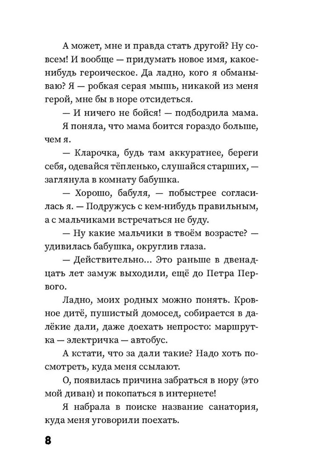 Клара, двенадцатилетний домосед, впервые уезжает из дома на целый месяц и отправляется в загадочный санаторий, расположенный на вершине горы. Вокруг санатория раскинулись Чёрный лес и солёная река Усолка, а также три необычные горы - Медная, Железная и Стеклянная. С самого начала это место напоминает недобрую сказку, и предчувствия Клары оправдываются: в палате её соседками оказываются девочки с необычными прозвищами - Ягишна, Однорукая и Плешивая, а по коридорам ходят строгие медсёстры с грозными именами Годзилла и Круэлла. Но Клара готова к испытаниям и находит настоящих, верных друзей. «Имена на осколках» - это магический реализм от Кристины Стрельниковой, лауреата премии имени С. Я. Маршака и международной детской литературной премии имени В. П. Крапивина. Книга сочетает захватывающий полуфантастический сюжет с важными темами подростковой жизни: дружба, принятие себя и окружающих. Обложку создала эстонская художница Ева Эллер, добавив волшебство в каждый штрих. Для детей и подростков среднего и старшего школьного возраста.| Издательство | Пять четвертей |