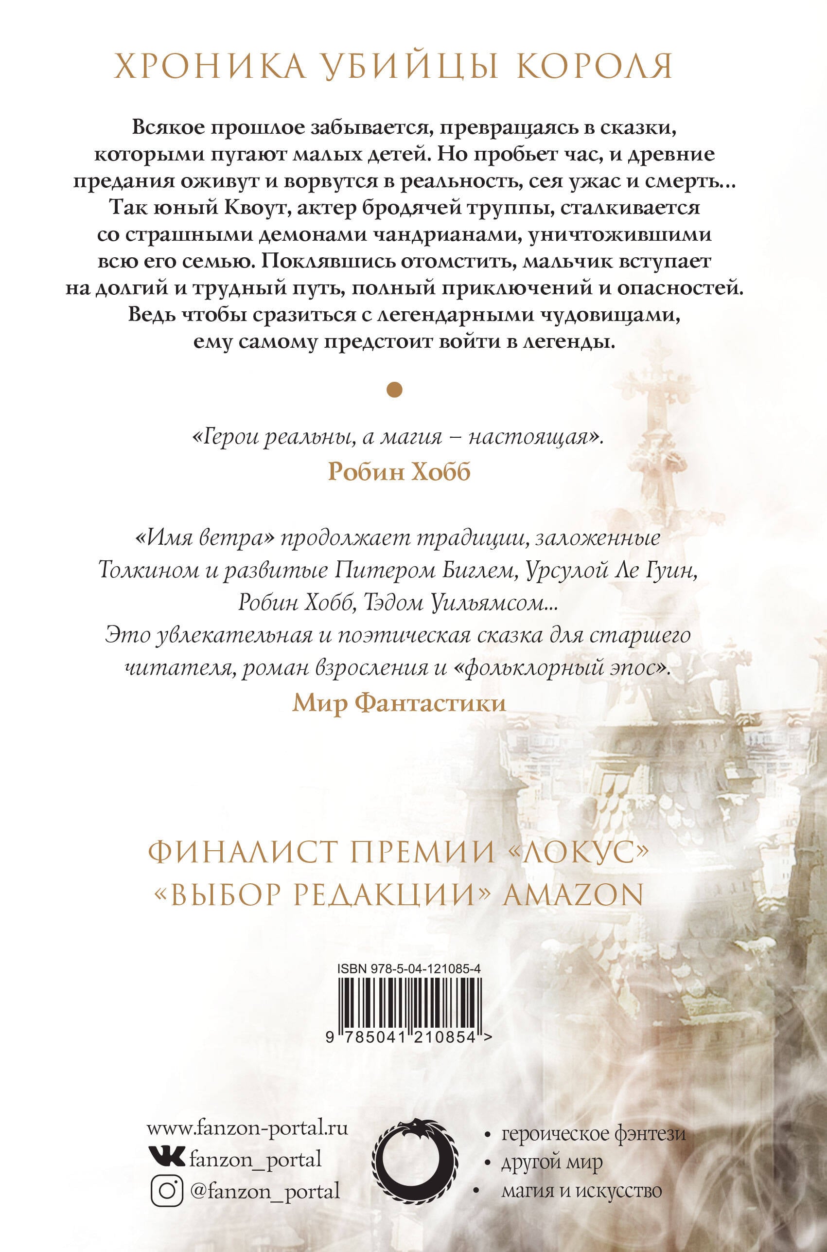 Всякое прошлое забывается, превращаясь в сказки, которыми пугают малых детей. Но пробьет час, и древние предания оживут и ворвутся в реальность, сея ужас и смерть… Так юный Квоут, актер бродячей труппы, сталкивается со страшными демонами чандрианами, уничтожившими всю его семью. Поклявшись отомстить, мальчик вступает на долгий и трудный путь, полный приключений и опасностей. Ведь чтобы сразиться с легендарными чудовищами, ему самому предстоит войти в легенды. «Герои реальны, а магия - настоящая». - Робин Хобб «"Имя ветра" продолжает традиции, заложенные Толкином и развитые Питером Биглем, Урсулой Ле Гуин, Робин Хобб, Тэдом Уильямсом... Это увлекательная и поэтическая сказка для старшего читателя, роман взросления и "фольклорный эпос"». - «Мир Фантастики» Финалист премии «Локус». «Выбор редакции» Amazon. Патрик Ротфусс - одно из главных открытий последнего времени в жанре фэнтези. Урсула Ле Гуин, Тэд Уильямс, Орсон Скотт Кард, Робин Хобб в один голос признали его роман «Имя ветра» новым словом в фантастике.| Издательство | ООО "Издательство "Эксмо" |