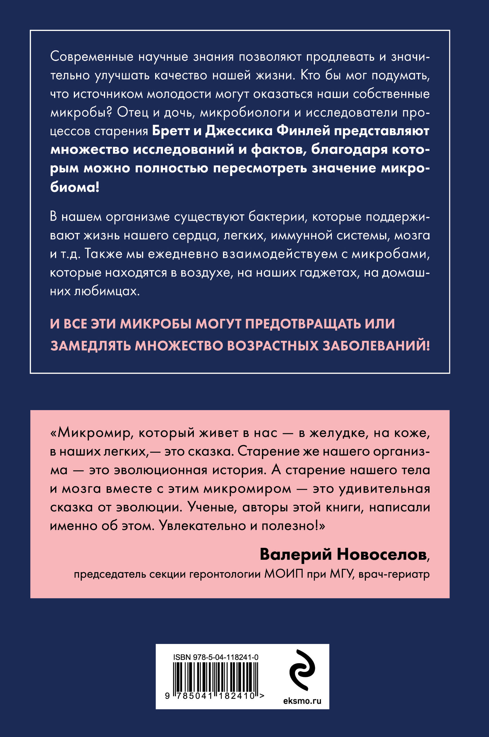 Первоклассные исследователи в области микробиологии и геронтологии Бретт и Джессика Финлэй подробно представляют новейшую науку о микробах, стоящих за здоровьем и долголетием, и предлагают простые в применении принципы и стратегии, позволяющие лучше стареть. Кто бы знал, что источник молодости полон микробов!| Издательство | ООО "Издательство "Эксмо" |