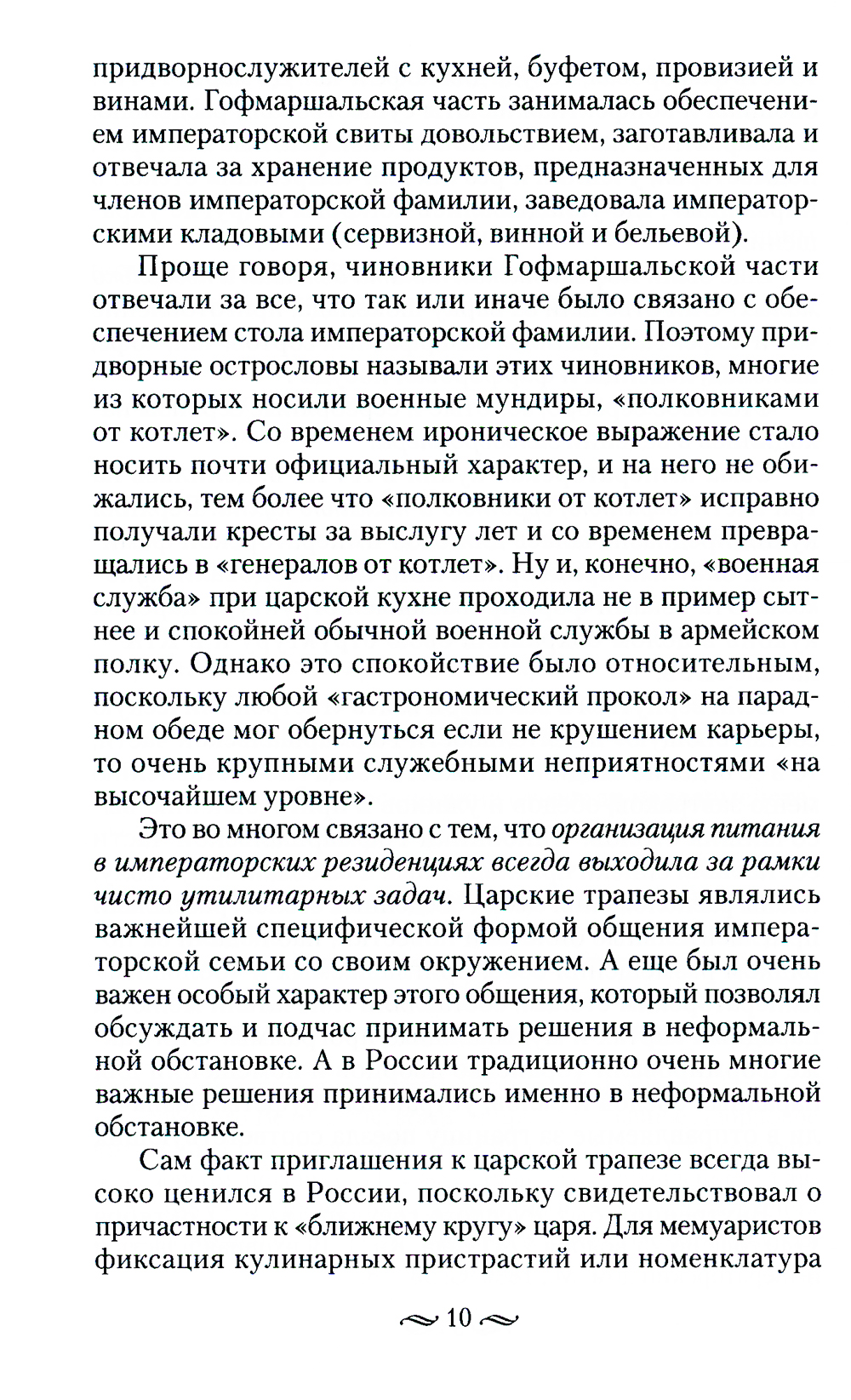 В книге рассказано немало любопытного и подчас неожиданного о сложной организации процессов питания всех категорий обитателей императорских резиденций - от семейств монархов и высокопоставленных придворных до штатных дворцовых служителей и тысяч людей, приглашаемых на праздник. Вы узнаете о кулинарных пристрастиях российских императоров, о количестве и ассортименте спиртных напитков на царских столах. О том, как контролировалось качество питания и обеспечивалась безопасность на императорских кухнях, об особенностях питания государей вне стен резиденций, в полевых условиях - на войне, на охоте, во время загородных пикников.| Издательство | Центрполиграф |
