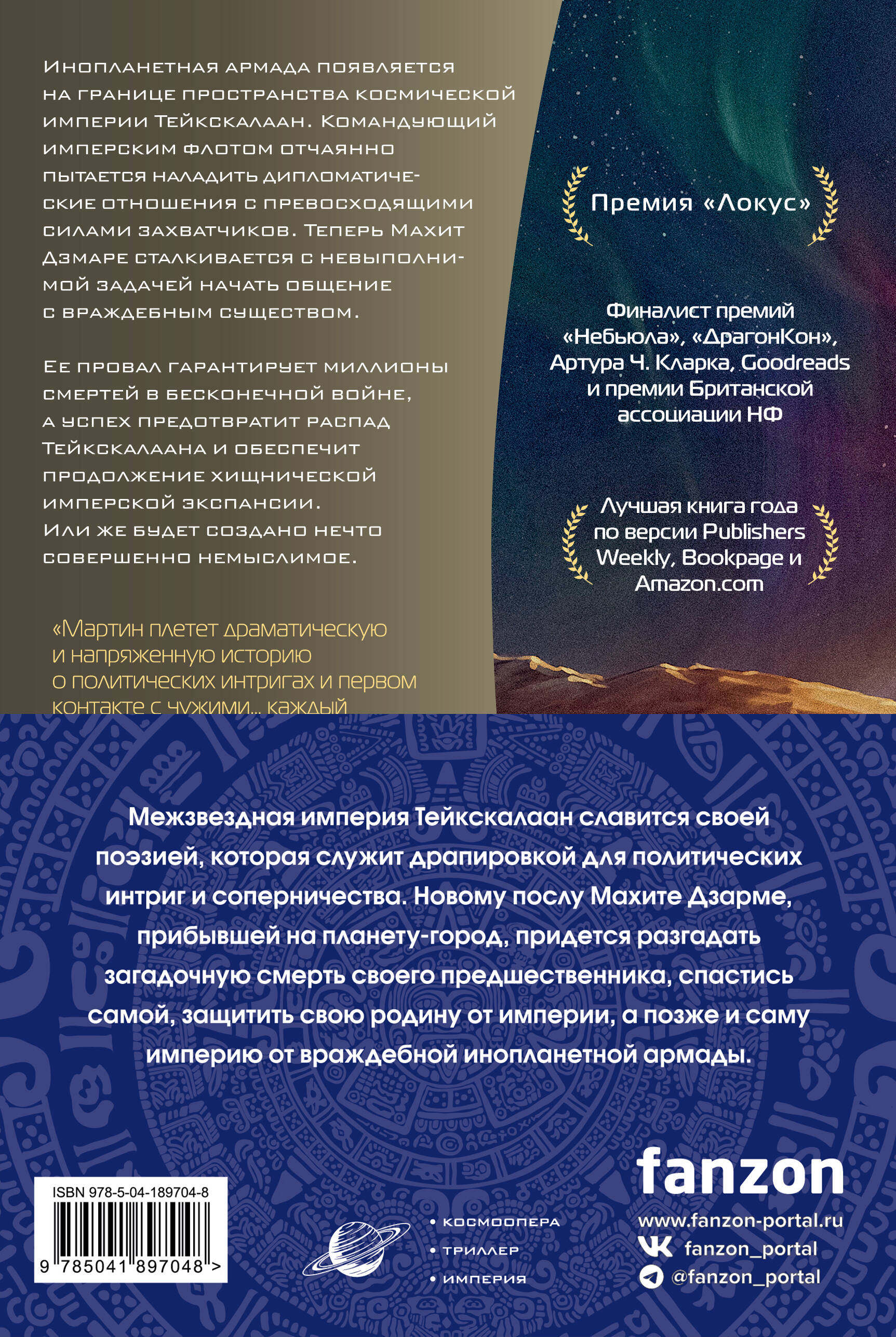 Лауреаты премии «Хьюго» 2020 и 2021 годов в категории «Лучший роман». Премия «Локус» за лучший НФ роман. Финалист премий «Небьюла», ДрагонКон, Артура Ч. Кларка, Goodreads и премии Британской ассоциации НФ. Лучшая книга года по версии Publishers Weekly, Bookpage и Amazon.com «Память, что зовется империей» Империя Тейкскалаан вызывает с космической станции Лсел нового посла. Теперь Махит Дзмаре предстоит отстаивать независимость станционников. Вживленная в мозг Махит память прежнего посла должна помочь ей в дипломатических битвах с имперцами, только вот имаго-аппарат внезапно выходит из строя, и Махит придется распутывать клубок интриг предшественника самостоятельно. Империя, пронизанная традиционным поэтическим этикетом, меняет все, чего коснется. Она готова перемолоть дерзкую варварку, но Махит не так проста, чтобы сдаться. «Пустошь, что зовется миром» Инопланетная армада появляется на границе пространства космической империи Тейкскалаан. Командующий имперским флотом отчаянно пытается наладить дипломатические отношения с превосходящими силами захватчиков. Теперь Махит Дзмаре сталкивается с невыполнимой задачей ― начать общение с враждебным существом. Ее провал гарантирует миллионы смертей в бесконечной войне. А успех предотвратит распад Тейкскалаана и обеспечит продолжение хищнической имперской экспансии. Или же будет создано нечто совершенно немыслимое. «Завораживающий дебют... он оставил меня совершенно ослепленным». - The New York Times Book Review «Великолепно созданная дипломатическая космическая опера... Читатели с нетерпением ждут запланированные сиквелы к этому впечатляющему дебюту». - Publishers Weekly «Политика и персонажи смешиваются с захватывающим сеттингом и изящной прозой в дебюте, который сплетает нити идентичности, ассимиляции, технологии и культуры, чтобы создать очень качественный политический научно-фантастический триллер». - Library Journal «Это одновременно эпическая и человеческая история в стиле Энн Леки и Юн Ха Ли». - Kirkus «Изысканное... захватывающее путешествие с богатым миром и увлекательными персонажами». - The Los Angeles Times «Интересно, подробно, богато». - The Wall Street Journal «Роман прекрасно уравновешивает экшен и интригу с вопросами империи и идентичности. Все связано блестящей космической оперой, я просто обожаю ее». - Энн Леки «Потрясающий научно-фантастический дебют. Посол с маленькой космической станции должен выжить в столице галактической империи, где все, кажется, хотят ее смерти… Потрясающе». - Рик Риордан «Изящный и совершенный пример жанра тайных интриг на фоне звезд. Восхитительное чтение. Я не мог оторваться». - Джо Уолтон «Аркади ― один из лучших новых голосов в фантастике». - Адриан Чайковски «Напряженная тайна убийства, вплетенная в вопросы технологической этики, и вызывающее воспоминания изображение чуждости. Мартин создает сложную и привлекательную культуру, на фоне которой разыгрывается эта история, полная политических интриг, ассимиляции и сопротивления. Смелая, красивая, захватывающая и глубокая книга». - Малка Олдер «Это тайна убийства, обернутая в политическую космическую оперу, которая глубоко погружает читателя в уникальные культуру и общество. Мне это очень понравилось, и я с нетерпением жду продолжения». - Марта Уэллс «Хитро спланированная, богатая и продуманная история о межзвездных интригах, которая вносит н