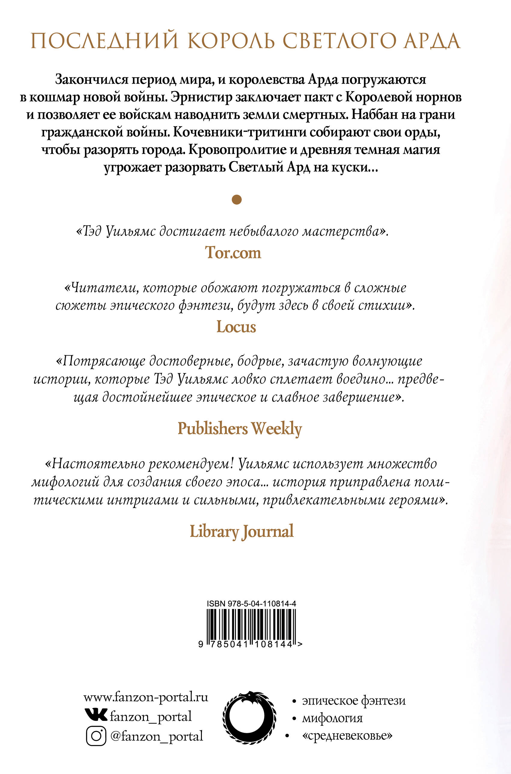 Закончился период мира, и королевства Арда погружаются в кошмар новой войны. Эрнистир заключает пакт с Королевой норнов и позволяет ее войскам наводнить земли смертных. Наббан на грани гражданской войны. Кочевники-тритинги собирают свои орды, чтобы разорять города. Кровопролитие и древняя темная магия угрожает разорвать Светлый Ард на куски… «Тэд Уильямс достигает небывалого мастерства». - Tor.com «Читатели, которые обожают погружаться в сложные сюжеты эпического фэнтези, будут здесь в своей стихии». - Locus «Потрясающе достоверные, бодрые, зачастую волнующие истории, которые Тэд Уильямс ловко сплетает воедино… предвещая достойнейшее эпическое и славное завершение». - Publishers Weekly «Настоятельно рекомендуем! Уильямс использует множество мифологий для создания своего эпоса… история приправлена политическими интригами и сильными, привлекательными героями». - Library Journal| Издательство | ООО "Издательство "Эксмо" |