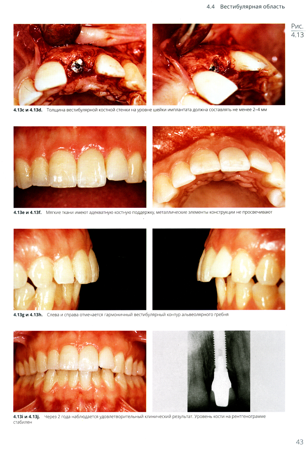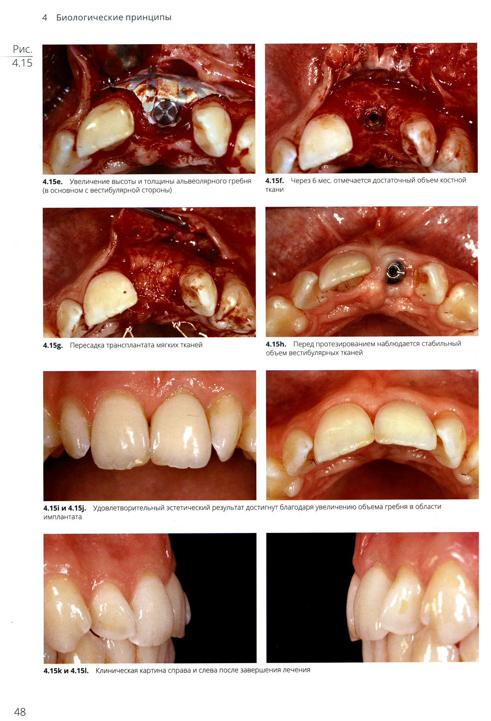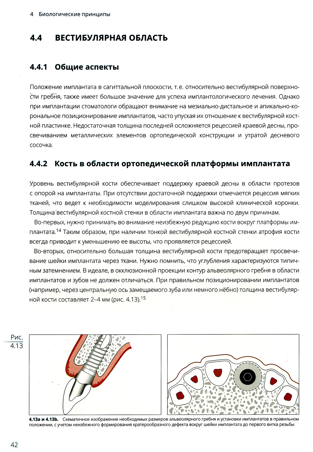 Имплантаты во многом расширили современные возможности стоматологического лечения.1 Однако, несмотря на то что научные исследования и клинический опыт, безусловно, подтверждают высокую эффективность имплантации, получить оптимальный эстетический результат при протезировании с опорой на имплантаты совсем не просто. При оценке только с точки зрения функции успех имплантологического лечения заключается в самом факте выживаемости имплантата. В таком случае уменьшение костной поддержки имплантата на 1-2 мм считается несущественным для его состоятельности. Если же цель терапии заключается в создании удовлетворительного внешнего вида зубных рядов, то рецессия краевой десны даже на 1 мм может привести к неудаче. Кроме того, нередко достижение оптимального эстетического результата затруднено неблагоприятными местными биологическими факторами. Неудивительно, что эта задача остается одной из наиболее сложных в стоматологии. В человеческом организме зубы выполняют особую функцию, в том числе сточки зрения влияния на альвеолярный гребень и прилегающие мягкие ткани. На тех участках, где в результате аномальных процессов не происходит формирования и развития зуба, альвеолярный гребень также не развивается. Таким образом, именно зубы определяют особенности ремоделирования костной и мягких тканей, а наличие зубов непосредственно обеспечивает гармоничное сочетание структур полости рта и внешний вид лица в целом. Утрата зубов приводит к атрофии поддерживающей их кости и изменению топографии мягких тканей, что неизбежно сопровождается ухудшением эстетического результата. Поэтому в эстетически значимой зоне очень важно предпринимать необходимые меры, направленные на профилактику или компенсацию неблагоприятных изменений альвеолярного гребня. Более того, экстракция зуба часто проводится на фоне инфекционного процесса, который определяет другой вид редукции кости - ее воспалительной резорбции. Благоприятный исход имплантологического лечения в одинаковой степени зависит от правильного выбора и проведения хирургического и ортопедического этапов. Каждый из этих этапов подразделяется на несколько последовательных стадий. Такой сложный по своей согласованности клинический процесс может быть успешно реализован только при четком понимании возможностей и ограничений всех запланированных манипуляций. Концепции имплантологического лечения, направленные на получение высокого эстетического результата, в целом сходятся на необходимости оценки определенных клинически значимых факторов в каждом конкретном случае. Как известно, одна и та же цель может быть достигнута с помощью нескольких вариантов терапии. Автор не утверждает, что представленные в этой книге материалы и методы являются единственно возможными, однако эффективность большинства из них подтверждается многолетним клиническим опытом. Каждая манипуляция подробно описана в тексте и продемонстрирована с помощью клинических слайдов. При этом отмечаются особенности применения альтернативных подходов. В последующих главах не только даны общие рекомендации, но и обсуждаются многие детали их практического применения, что отражено в названии данной монографии. Для прогнозируемого достижения оптимальных результатов и во избежание неприятных сюрпризов оч