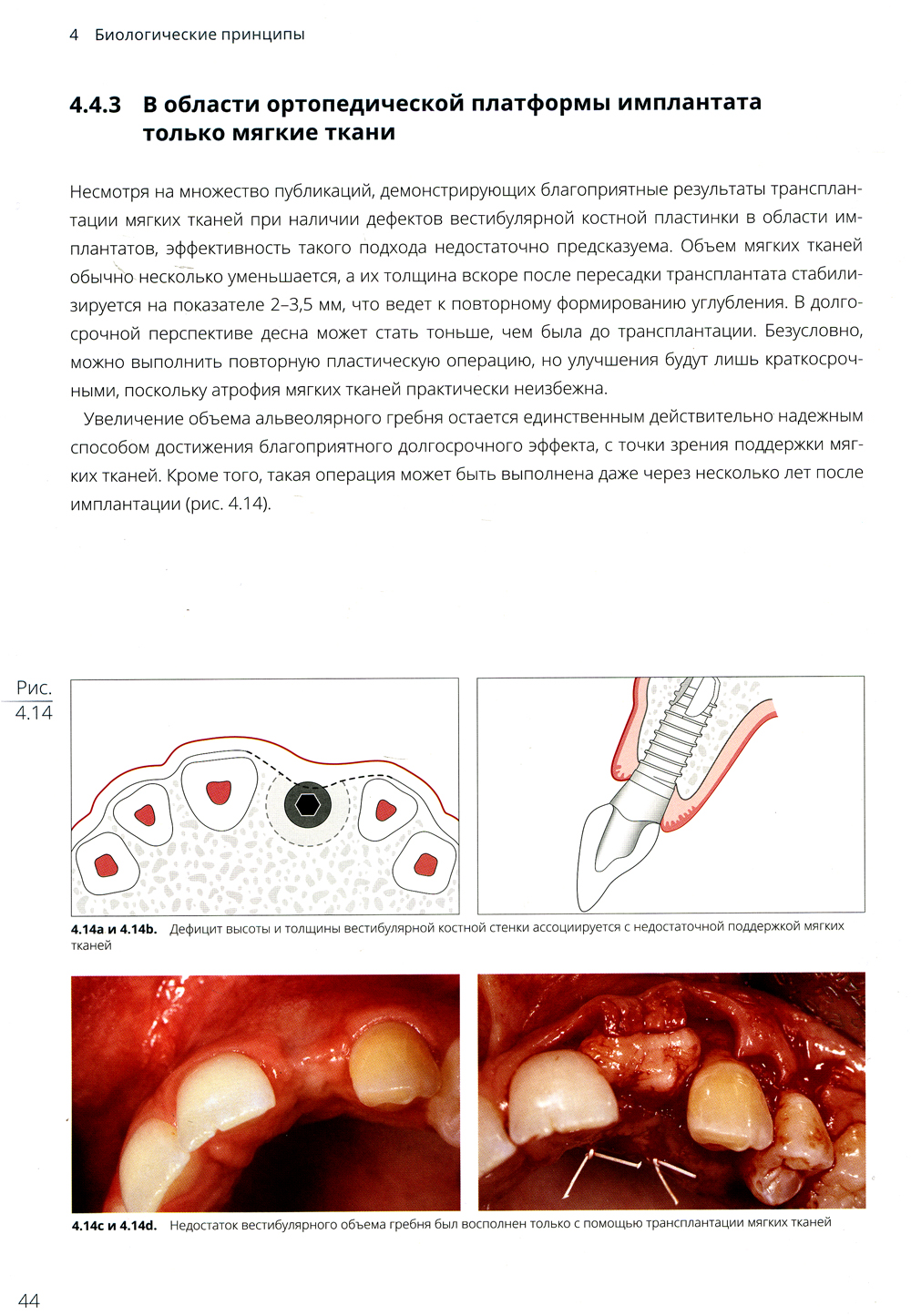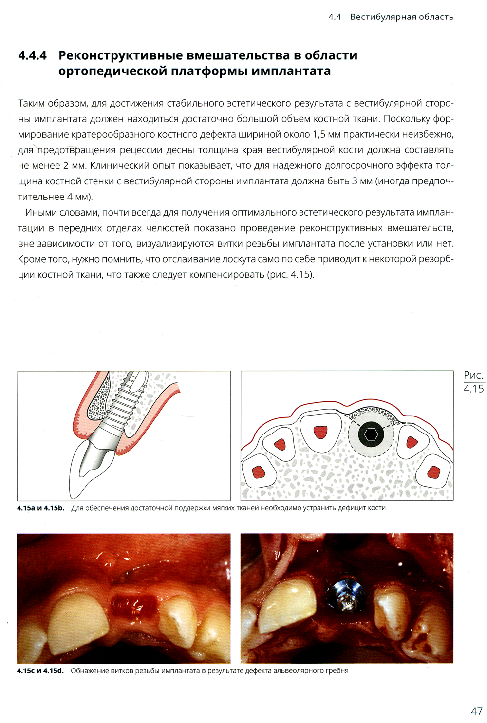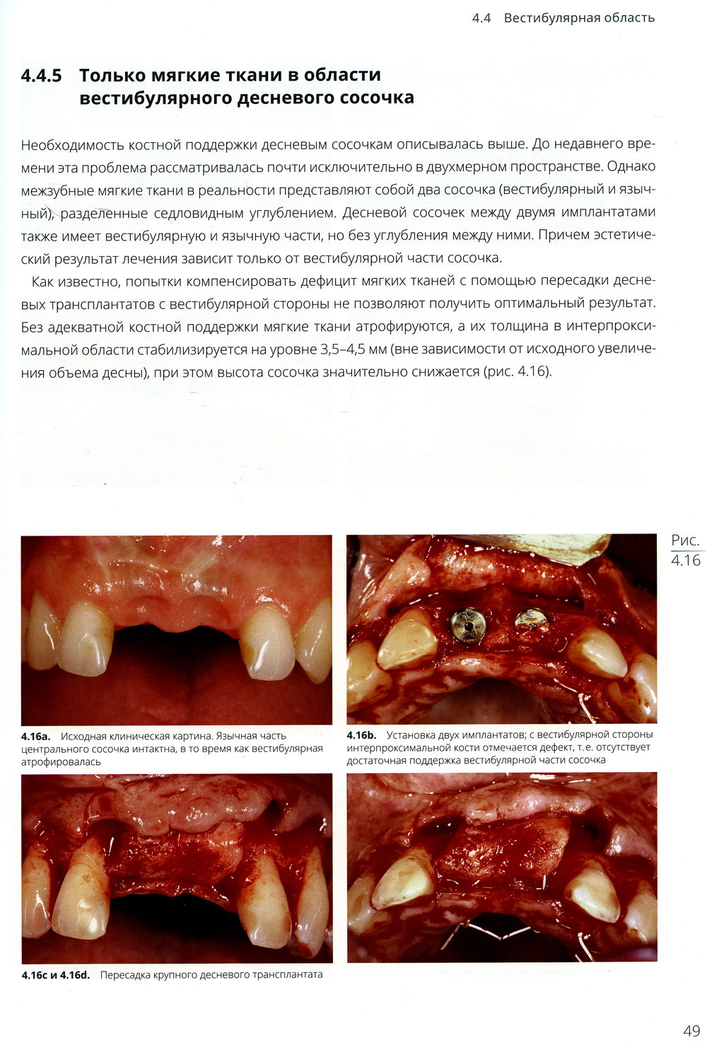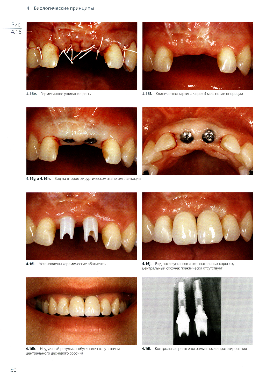 Имплантаты во многом расширили современные возможности стоматологического лечения.1 Однако, несмотря на то что научные исследования и клинический опыт, безусловно, подтверждают высокую эффективность имплантации, получить оптимальный эстетический результат при протезировании с опорой на имплантаты совсем не просто. При оценке только с точки зрения функции успех имплантологического лечения заключается в самом факте выживаемости имплантата. В таком случае уменьшение костной поддержки имплантата на 1-2 мм считается несущественным для его состоятельности. Если же цель терапии заключается в создании удовлетворительного внешнего вида зубных рядов, то рецессия краевой десны даже на 1 мм может привести к неудаче. Кроме того, нередко достижение оптимального эстетического результата затруднено неблагоприятными местными биологическими факторами. Неудивительно, что эта задача остается одной из наиболее сложных в стоматологии. В человеческом организме зубы выполняют особую функцию, в том числе сточки зрения влияния на альвеолярный гребень и прилегающие мягкие ткани. На тех участках, где в результате аномальных процессов не происходит формирования и развития зуба, альвеолярный гребень также не развивается. Таким образом, именно зубы определяют особенности ремоделирования костной и мягких тканей, а наличие зубов непосредственно обеспечивает гармоничное сочетание структур полости рта и внешний вид лица в целом. Утрата зубов приводит к атрофии поддерживающей их кости и изменению топографии мягких тканей, что неизбежно сопровождается ухудшением эстетического результата. Поэтому в эстетически значимой зоне очень важно предпринимать необходимые меры, направленные на профилактику или компенсацию неблагоприятных изменений альвеолярного гребня. Более того, экстракция зуба часто проводится на фоне инфекционного процесса, который определяет другой вид редукции кости - ее воспалительной резорбции. Благоприятный исход имплантологического лечения в одинаковой степени зависит от правильного выбора и проведения хирургического и ортопедического этапов. Каждый из этих этапов подразделяется на несколько последовательных стадий. Такой сложный по своей согласованности клинический процесс может быть успешно реализован только при четком понимании возможностей и ограничений всех запланированных манипуляций. Концепции имплантологического лечения, направленные на получение высокого эстетического результата, в целом сходятся на необходимости оценки определенных клинически значимых факторов в каждом конкретном случае. Как известно, одна и та же цель может быть достигнута с помощью нескольких вариантов терапии. Автор не утверждает, что представленные в этой книге материалы и методы являются единственно возможными, однако эффективность большинства из них подтверждается многолетним клиническим опытом. Каждая манипуляция подробно описана в тексте и продемонстрирована с помощью клинических слайдов. При этом отмечаются особенности применения альтернативных подходов. В последующих главах не только даны общие рекомендации, но и обсуждаются многие детали их практического применения, что отражено в названии данной монографии. Для прогнозируемого достижения оптимальных результатов и во избежание неприятных сюрпризов оч